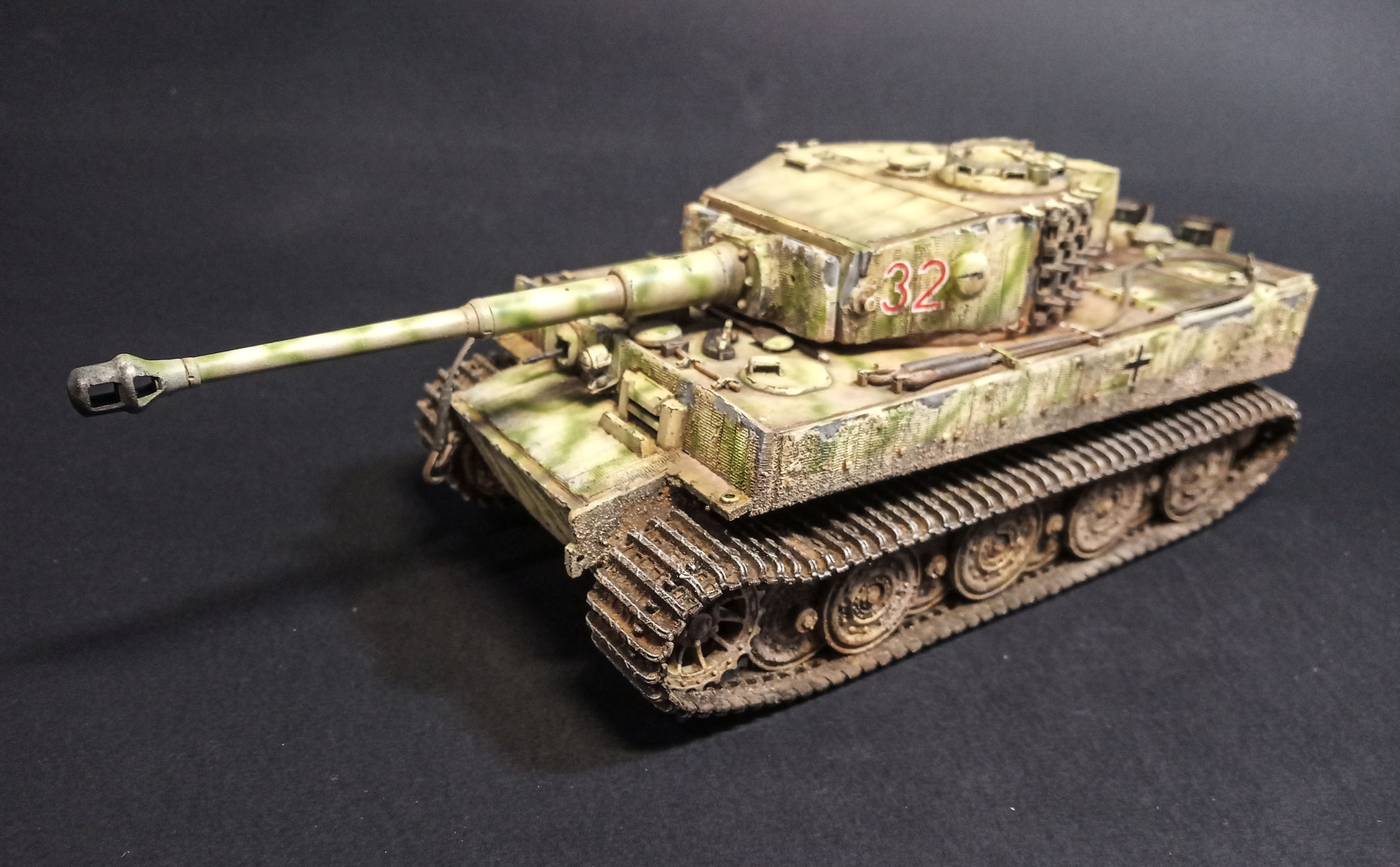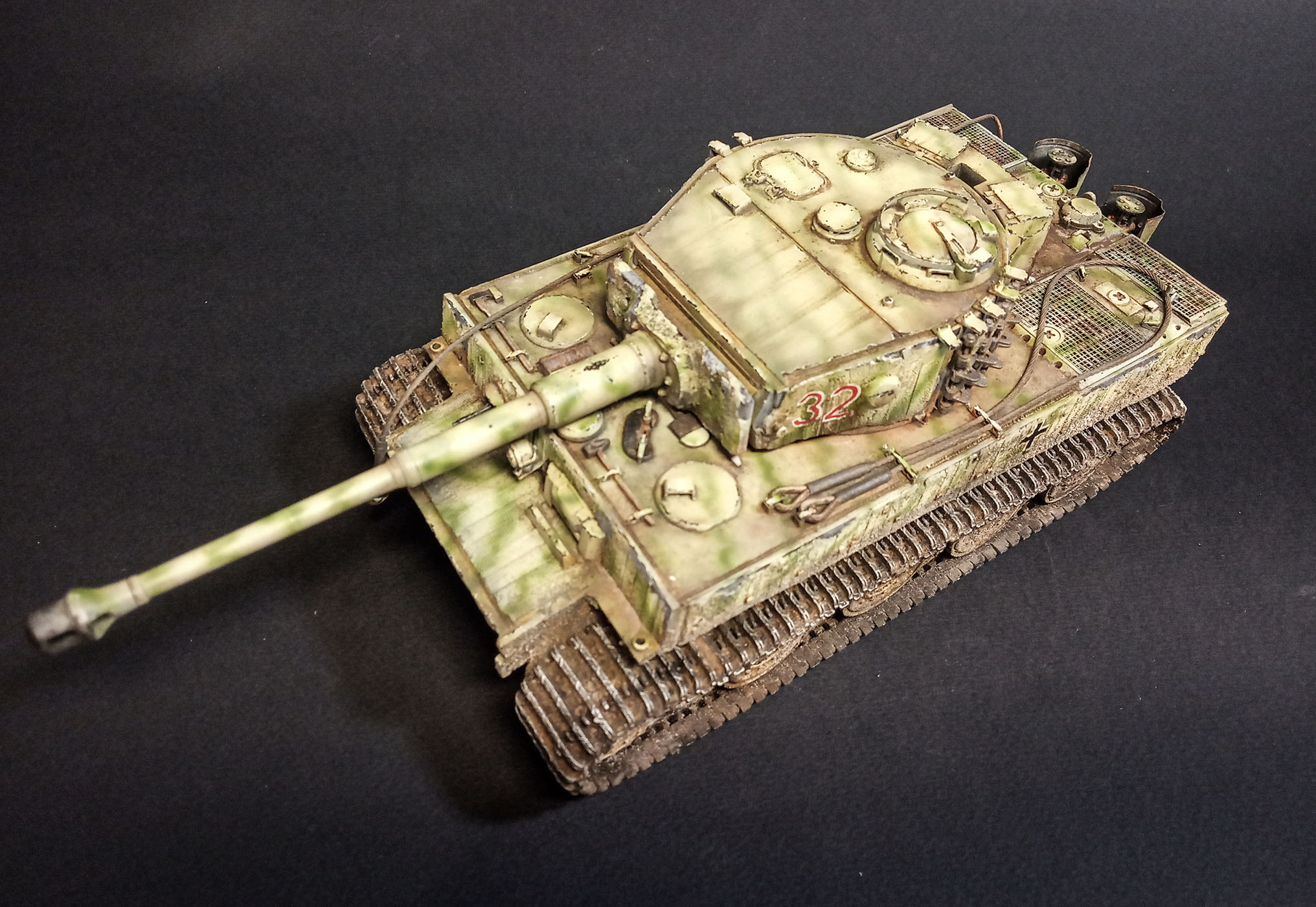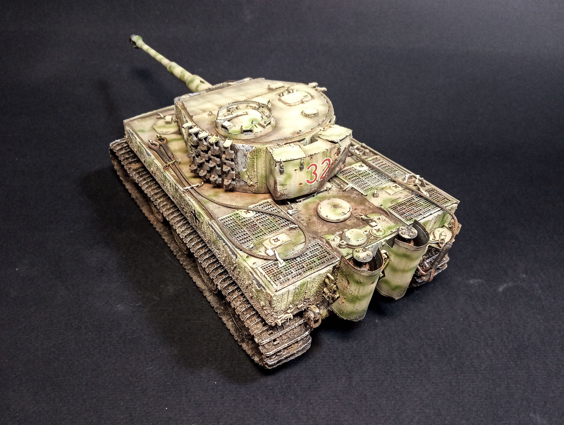 Доброго дня коллеги. Давненько я ничего не выкладывал на суд уважаемой публики , но это не значит что не чего было)). На сей раз очень непростая работа : не имеющий исторической привязки Pz.Kpfw. VI Tiger Ausf. E . Работа была закончена еще в 2017 году , но сделать фото удалось только сейчас. Достался мне по случаю старый тамиевский танчеГ в сборке ( последние фото). Мне бы плюнуть и наслаждаться сборкой новых наборов, нет же, взмахнув шашкой стоя на столе я вскричал : - ЯЖ Моделист!!). И затянулся суровый запил почти на год. От Тамии остался только корпус и половинка башни, остальное запчасти от Dragon и самодел. проблем при сборке было целый воз - тамия длиннее и шире Драгона + утяжины , говнолитье ( сказался возраст модели) и тд и тд. всего уж не упомню. Но несмотря на эти проблемы - пилить было достаточно приятно и не напряжно. Не могу не упомянуть о жидкой шпаклевке от Аврора -Хобби. Очень она меня выручила -после высыхания становиться как пластик и пилить удобно. (Не реклама) По итогу получилась вот такая работа. Как не странно результатом я остался доволен, чего и вам желаю). Приятного просмотра!