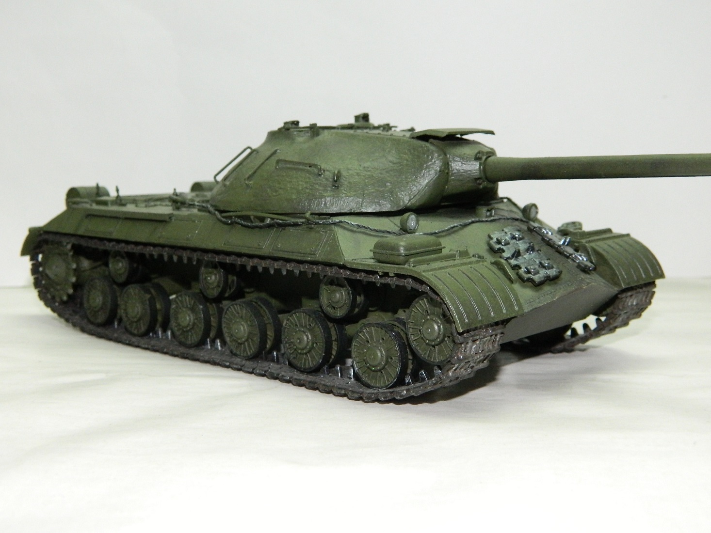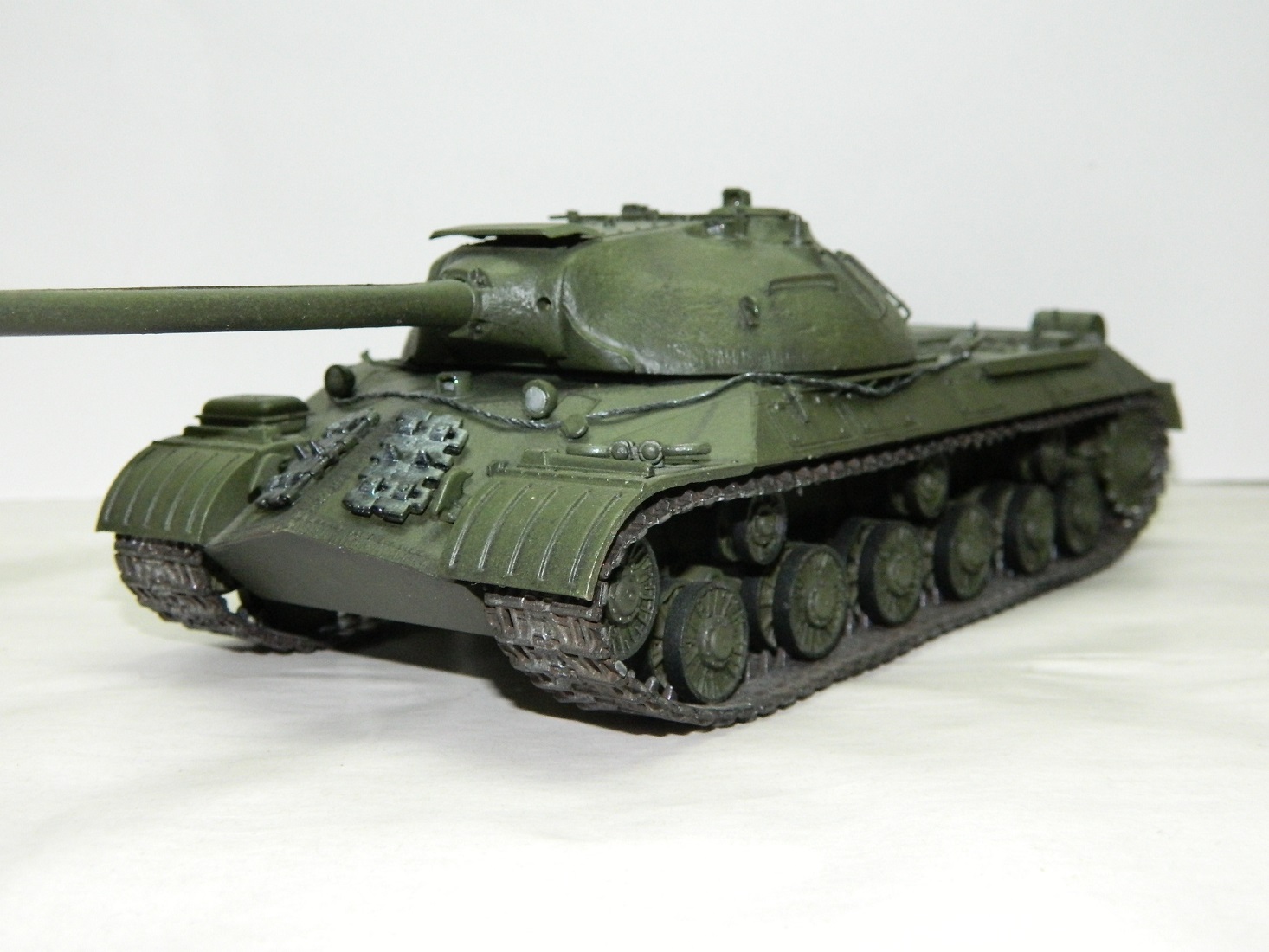 Модель собирал полностью из коробки.В процессе сборки решил из модификации ис-3м сделать ис-3 первых выпусков .Модель собирал около двух лет назад ( так что не судите строго), а покрасить решил только сейчас .Покраску производил мастер акрилом от звезды, смывки и масляные делал точки обычными масляными красками, единственное не наносил эффекты загрязнения на ходовую часть. Надеюсь модель вам понравится.