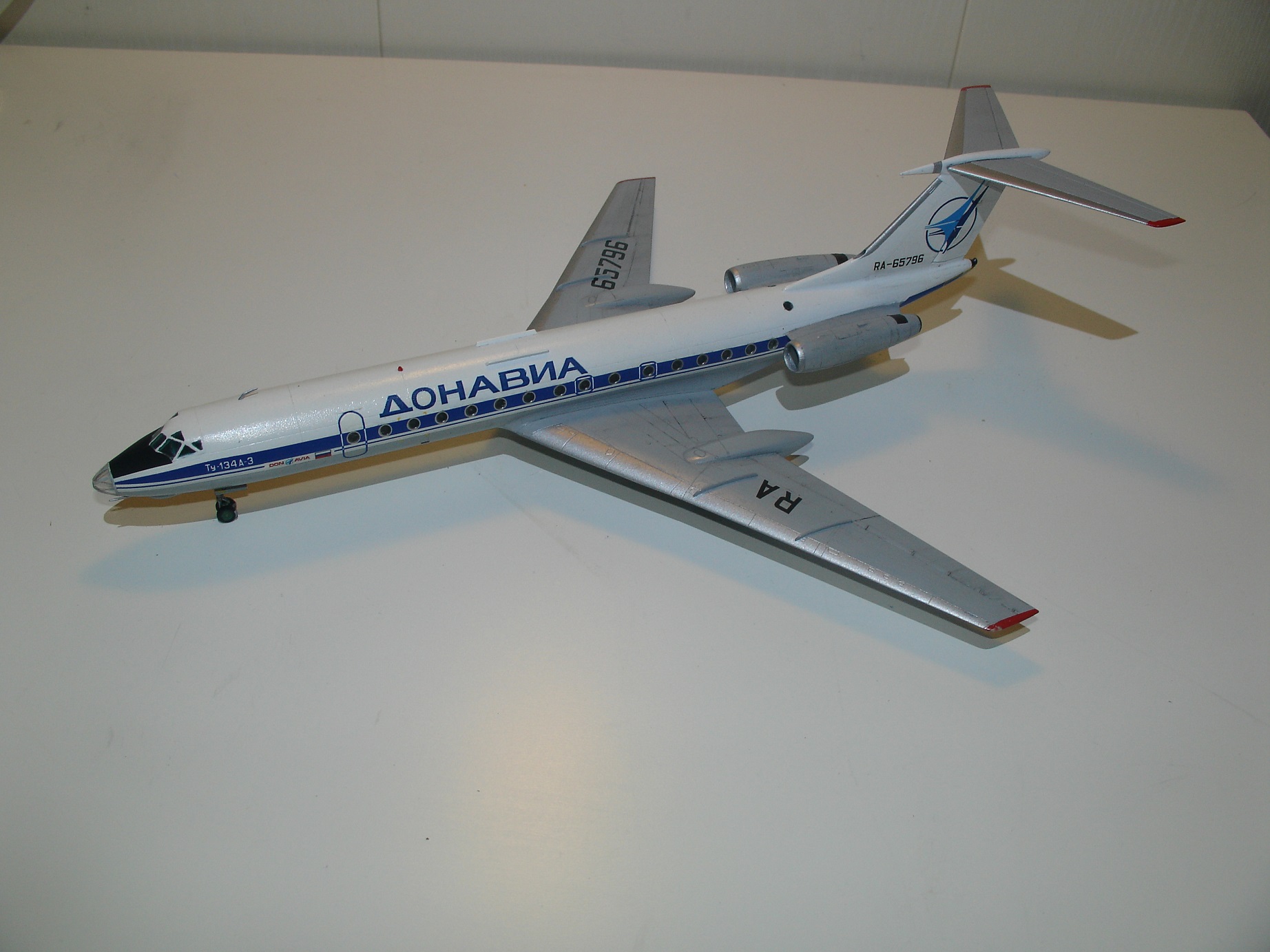 Здравствуйте! Только зарегистрировался на сайте, и хочу предложить Вашему вниманию первую свою модель в масштабе 1:144. Была собрана в прошлом году. Это, не требующий представления, звездовский "свисток" в ливрее ДОНАВИА (Спасибо за декаль компании Revaro). Выбрал этот вариант окраски, потому как мой отец долгое время, вплоть до развала АК, возглавлял летный коллектив ДОНАВИА. Некий реквием. И еще, считаю "маленькую тушку" одним из самых красивых самолетов.