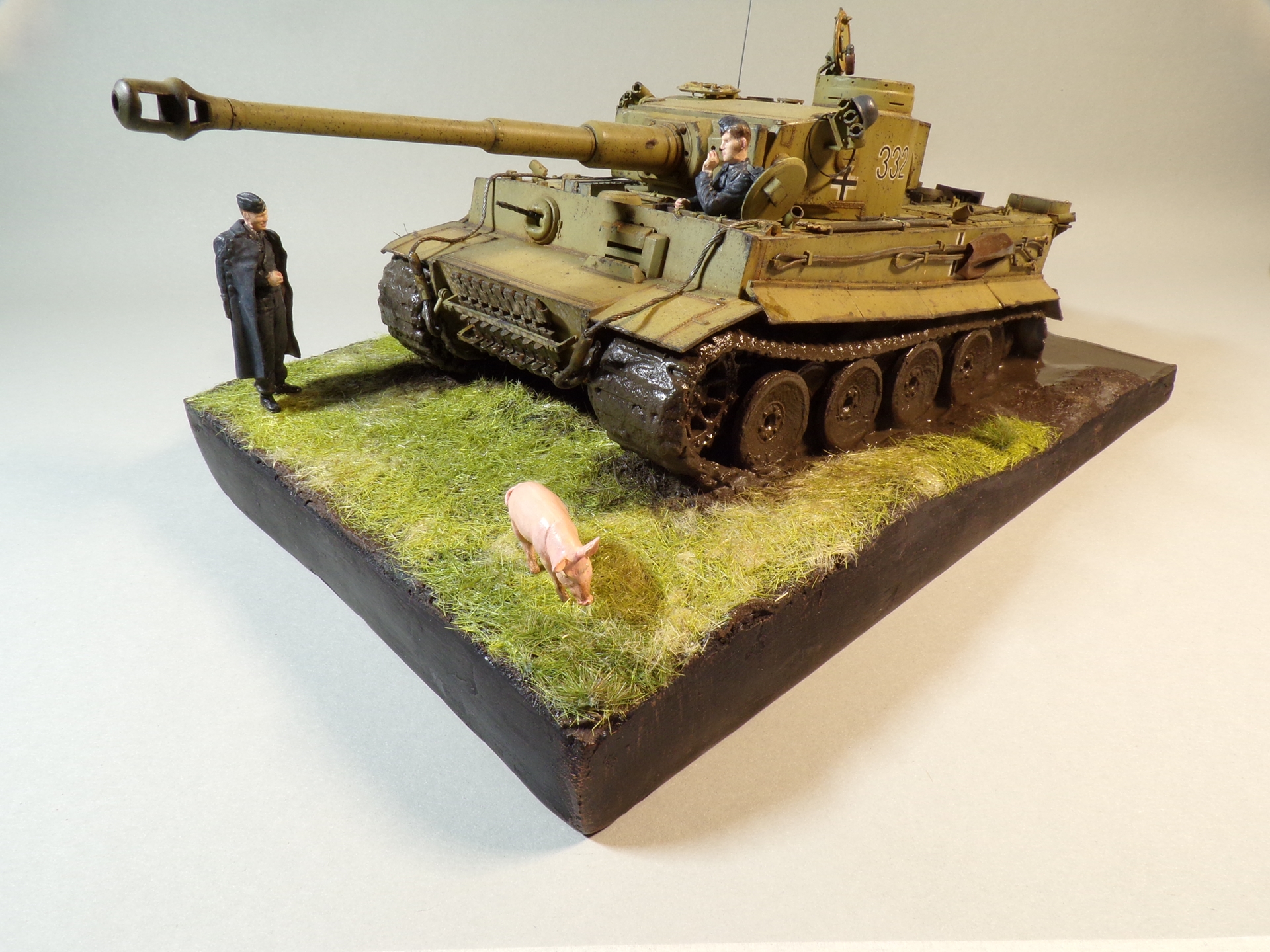 По отдельности танк и персонажи выглядят здорово( исключая 'грязь'на ходовой). Все вместе вызывает когнетивный диссонанс и недоумение, паркетный полигон на шоколадной фабрике Чарли? Совершенно нет ощущения, что танк застрял. Скорее, что он заехал кормой к непонятной луже с идеально ровными краями и жижей в уровень с травой по идеальному альпийскому лугу, и экипаж зачем то замазал ходовую этой непонятной субстанцией. Не в обиду.