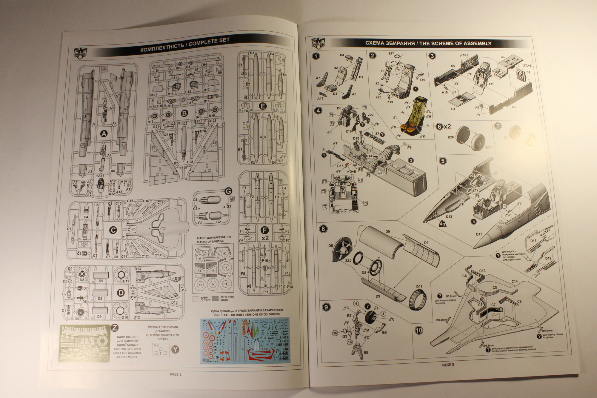 Внутри инструкция и пакет плотно забитый литниками – все вместе. Там же и декаль, маски, небольшая плата с травлением и литник с прозрачными деталями.
