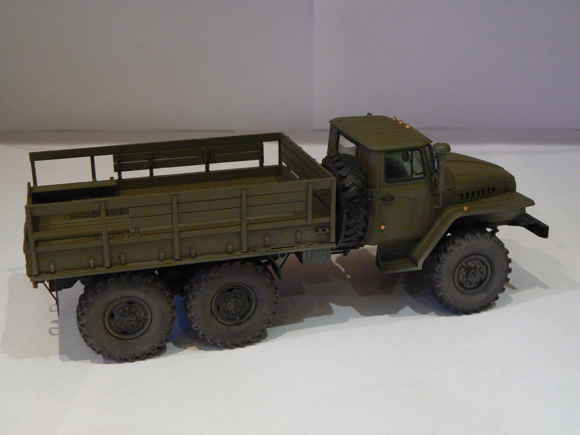 Здравствуйте! Представляю очередную модель автомобиля Урал 375д от Trumpeter. Собиралась хорошо без особых проблем. Красилась Tamya, MR.HOBBY, Химия от Миг. Судить Вам.