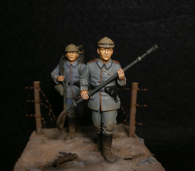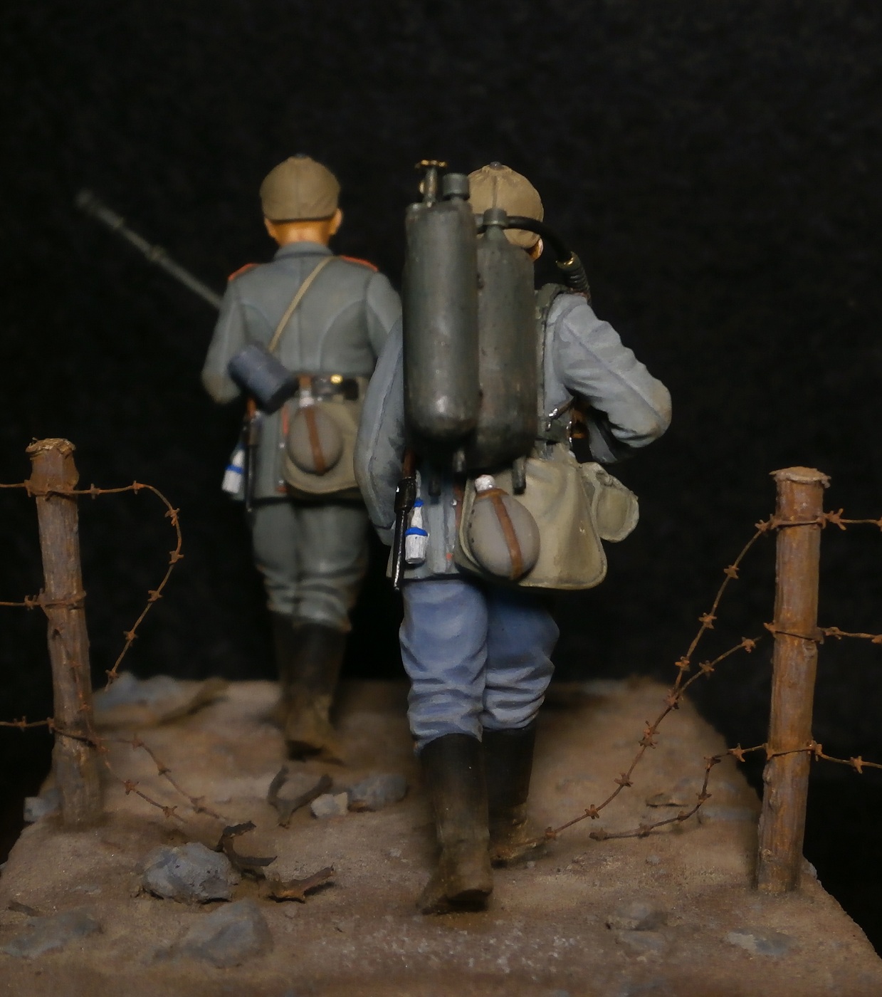 Прекрасная работа. Всё нравится. Только разве что форма у них подозрительно чистенькая, кроме коленок. Всё таки в окопах довольно грязно)