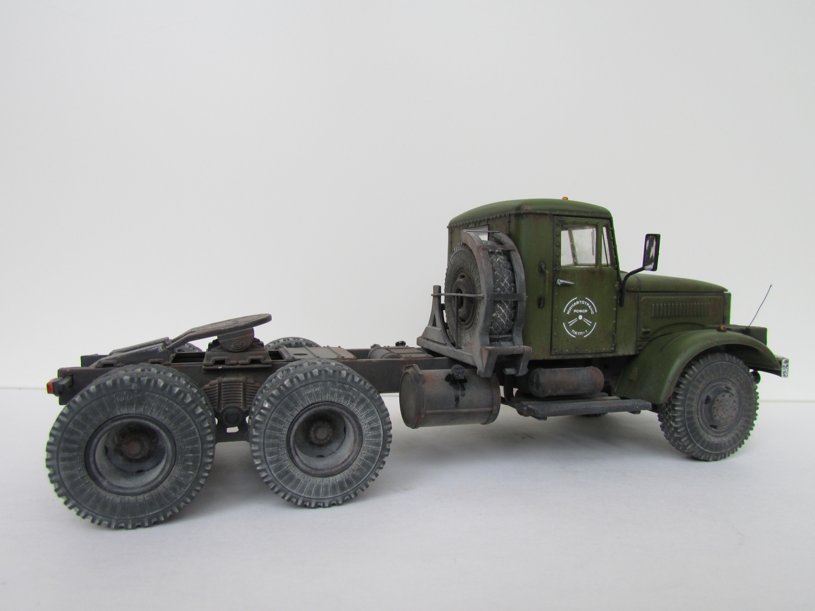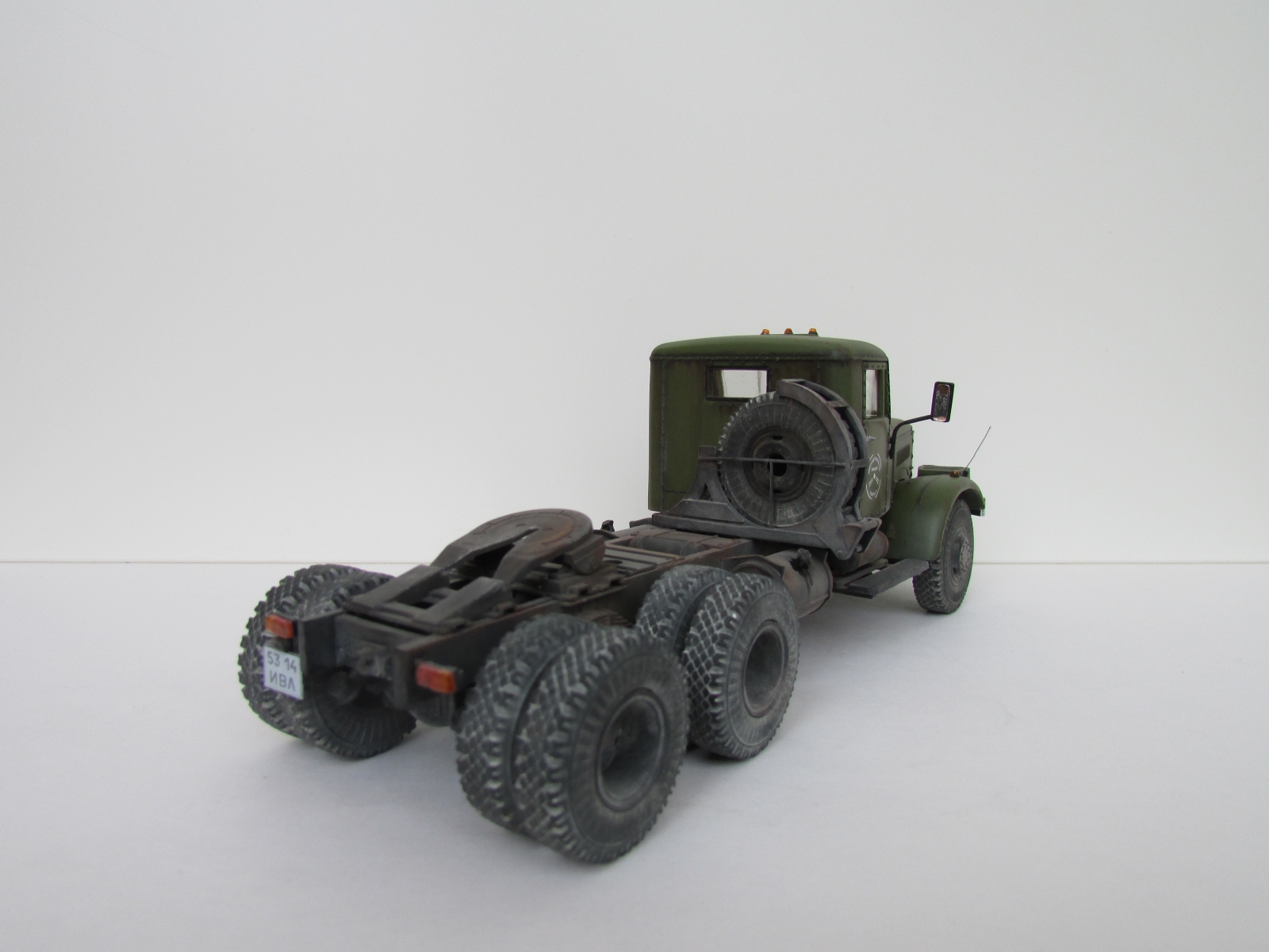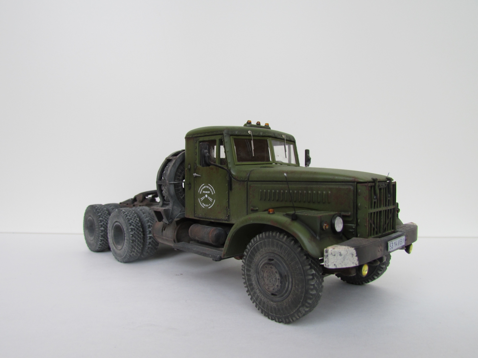 Еще раз приветствую коллеги !!! Крайняя модель на 2018 год , Практически изкоробка , за исключением некоторых внешних доработок : были сточены поручни на кабине и изготовлены из скрепок для степлера , габаритные усы из проволоки , слегка довел до ума ДЗК , туманки эльф. Окраска : база Валехо , смывка Тамия, пигменты Миг.