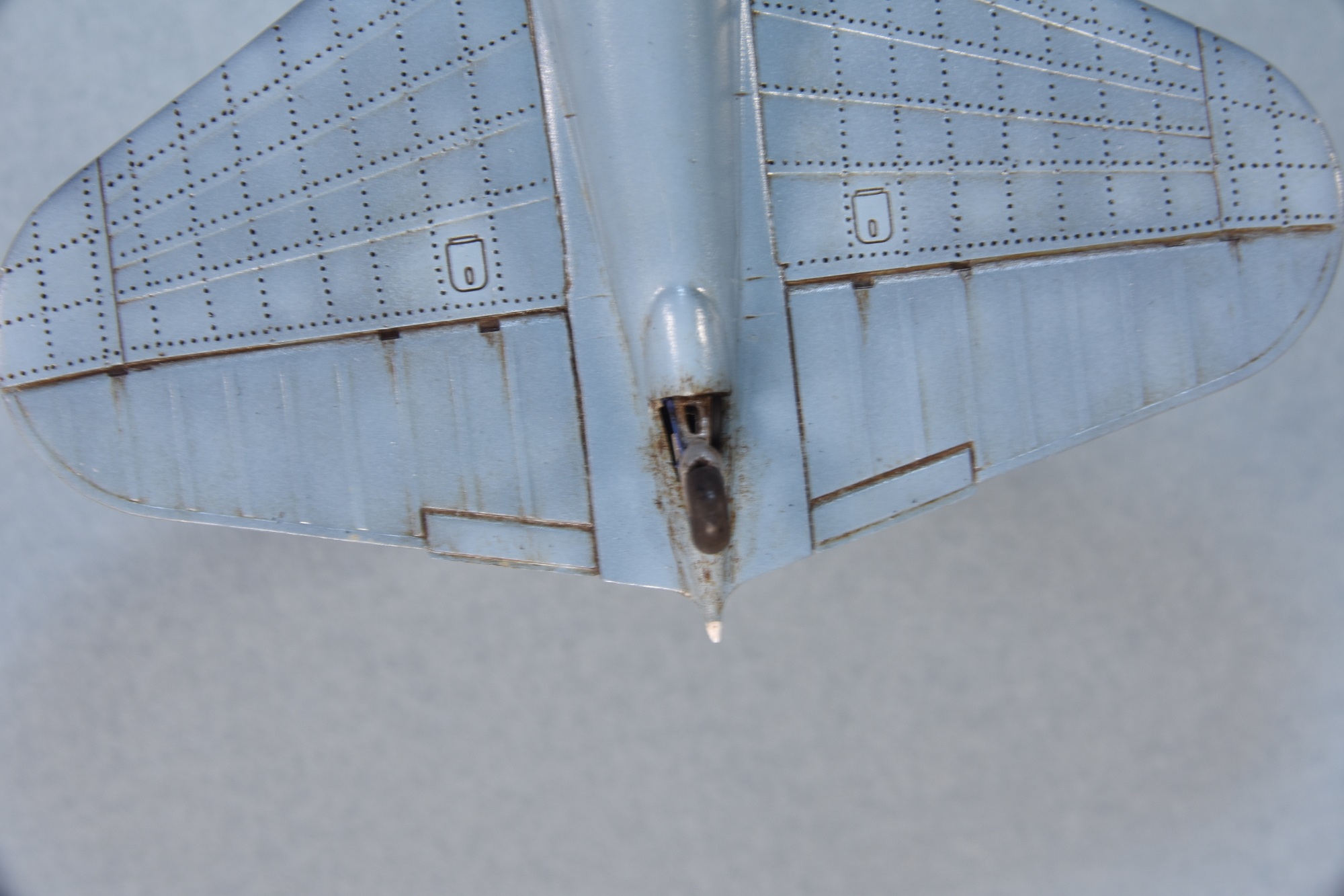 Но, если честно, то я никак не могу её осмыслить - собранные в одном месте весовые компенсаторы элеронов, металлическое крыло, одноместный вариант и звёзды с белой окантовкой создают стойкое ощущение, что что-то здесь не так...