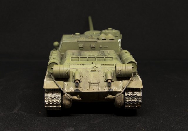 Модель зрелищная,но по моему потёки на катках нарочито выглядят.Во первых из под болтов на катках нечему течь,болты просто скрепляют внутренний и внешний блины.Смазки там по определению нет.Ступичные крышки,ну там да снимают крышку и набивают смазку специальным шприцом-тавотницей.После войны на крышках сделали отверстия с резьбой(как на старой звезде)и крышки можно было не снимать.Но проблема в том что смазка очень густая и даже при нагреве вряд-ли потечёт из под крышки ступицы.
