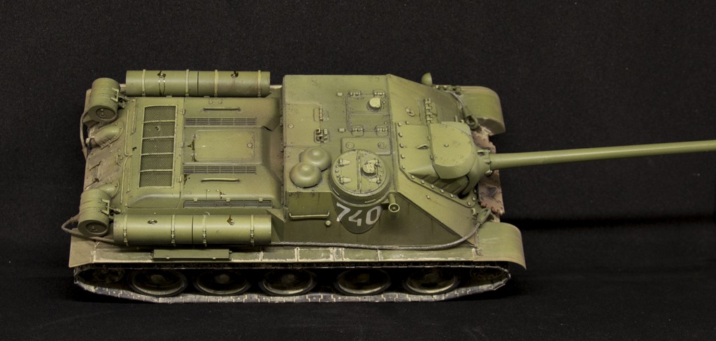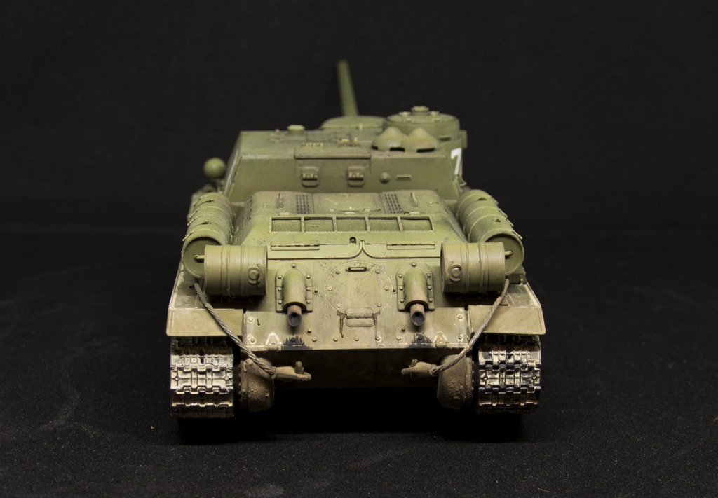 Су-100 от Звезды. Недавняя новинка. Собрана из коробки без каких либо дополнений и изменений. Окрашивалась ганзовскими красками H-серии. Для окраски бандажей и накрашивания номеров была нарисована и вырезана окрасочная маска. Накрашенные номера гораздо симпатичнее чем декали. Для везеринга использована различная химия от Пасифика до Мига,