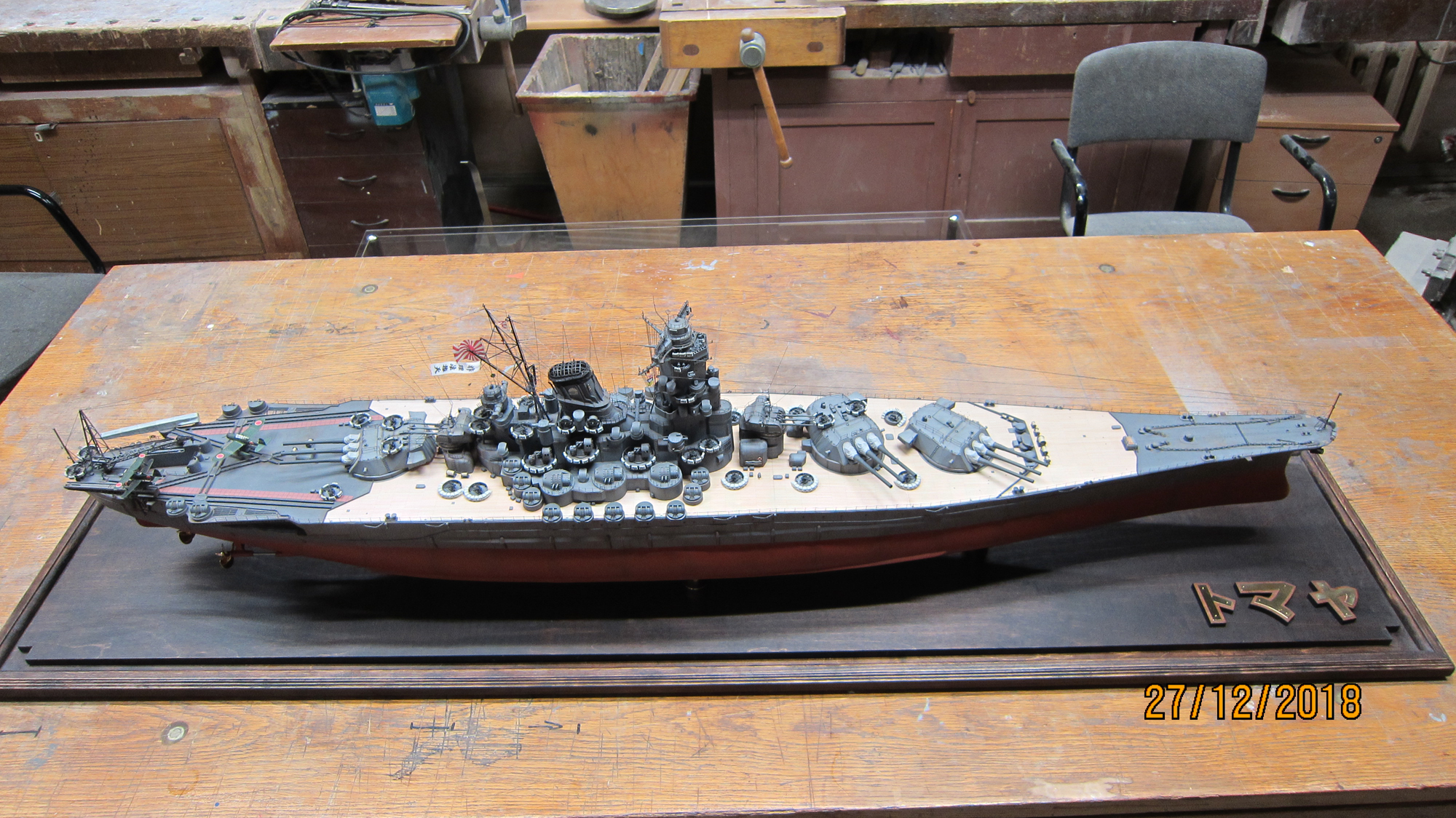 А вот такой вопрос: меня надпись на подставке заинтересовала.....а есть фото Ямато (корабля) , где на нем название написано? (на подставке читается справа на лево)