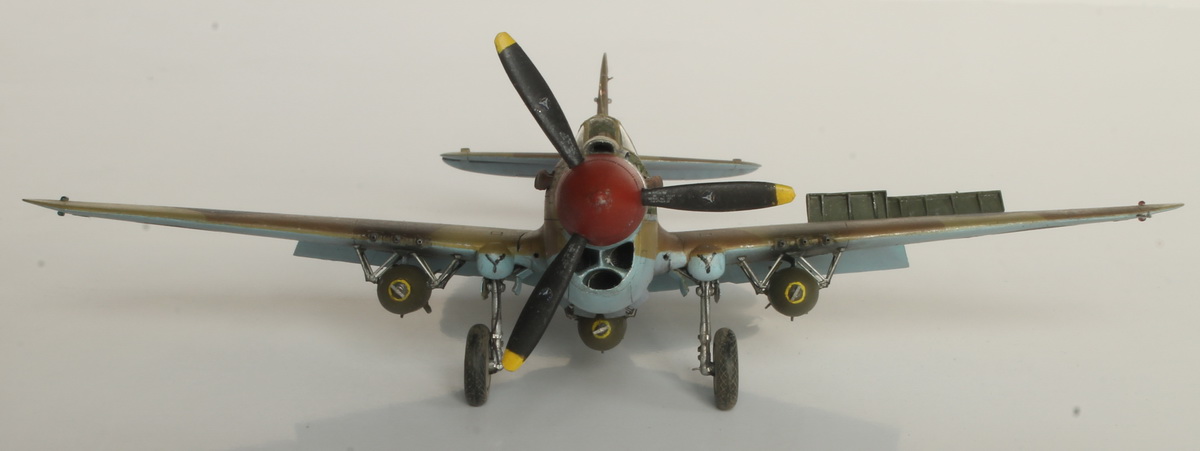 17. Стойка троссовой антенны выточена из латуни, но на фото троссовых антенн в 450 сквадроне нет, так что ставить не стал (спасибо Рустаму за подсказку). Прочие штырьевые антенны и штырьевой прицел на капоте - проволочки.