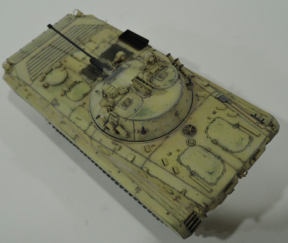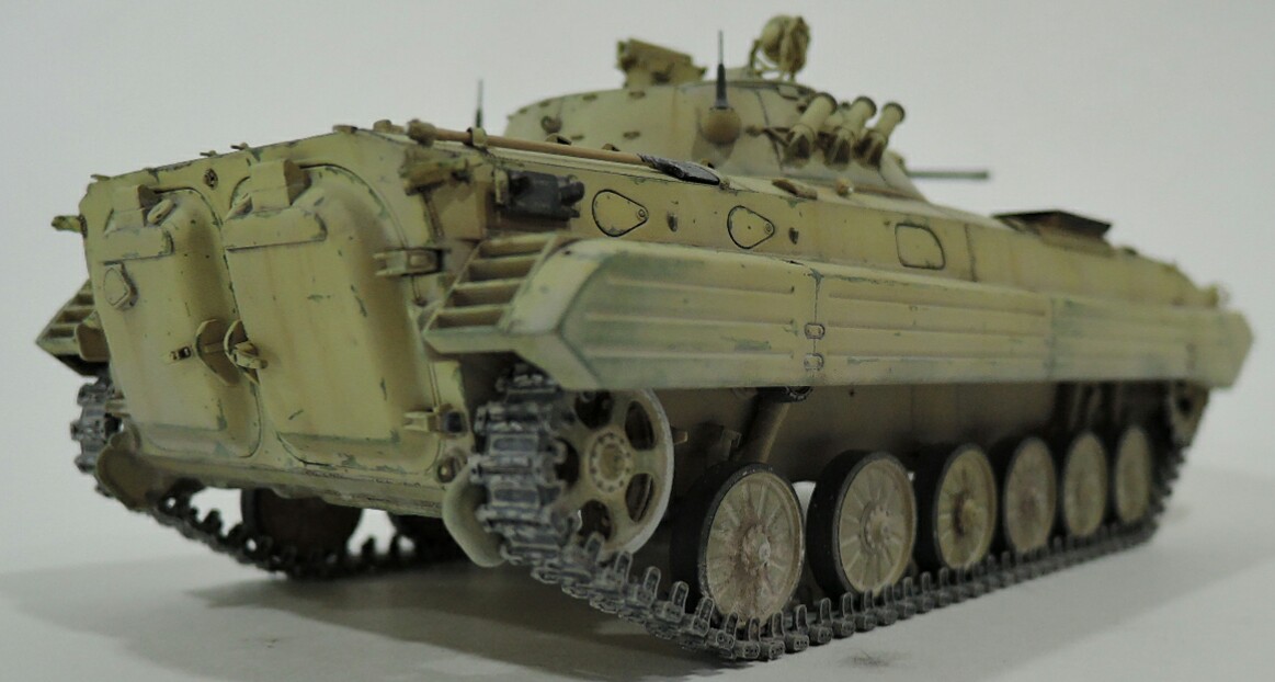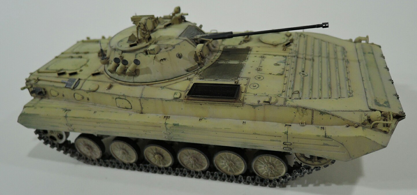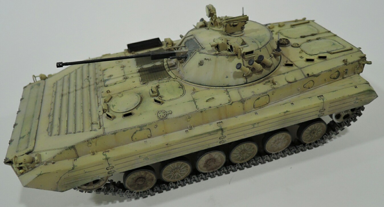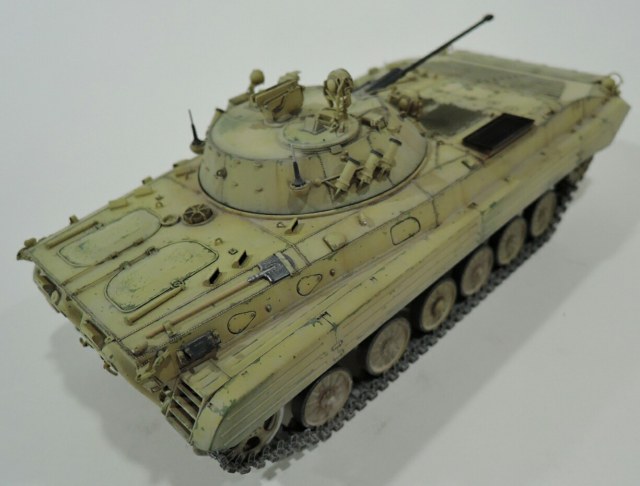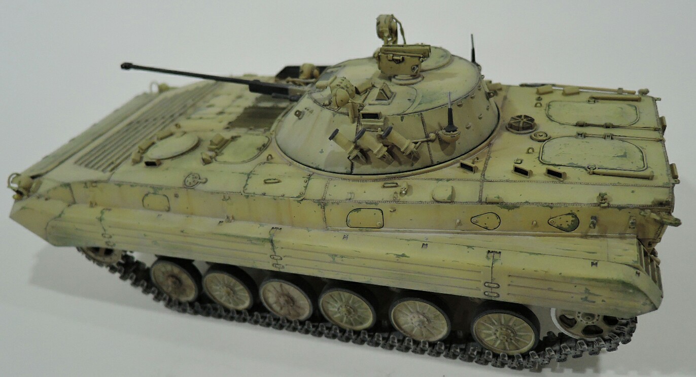 Судя по фото сирийцы получили БМП-2 ранних серий,без надбоя и крепления для КМТ на лобовом листе. За базу взял набор от трумпитера,башню поменял на продукцию SP Design,ствол от Model Point и траки Мастер Клуб.