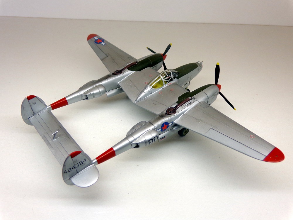Эта история сподвигла меня сделать модель русского "Лайтнинга". Модель от ХБ легко собирается, но довольно простовата, Поэтому пришлось добавить отсутствующие ВЗ карбюраторов, фару, ящик в кабину. А вот другие дополнения я уже поленился делать. У модели хорошая, прозрачная "стекляшка", неплохо решен вопрос установки пропеллеров, по крайней мере они получились вращающимися, что на моих моделях бывает не всегда.