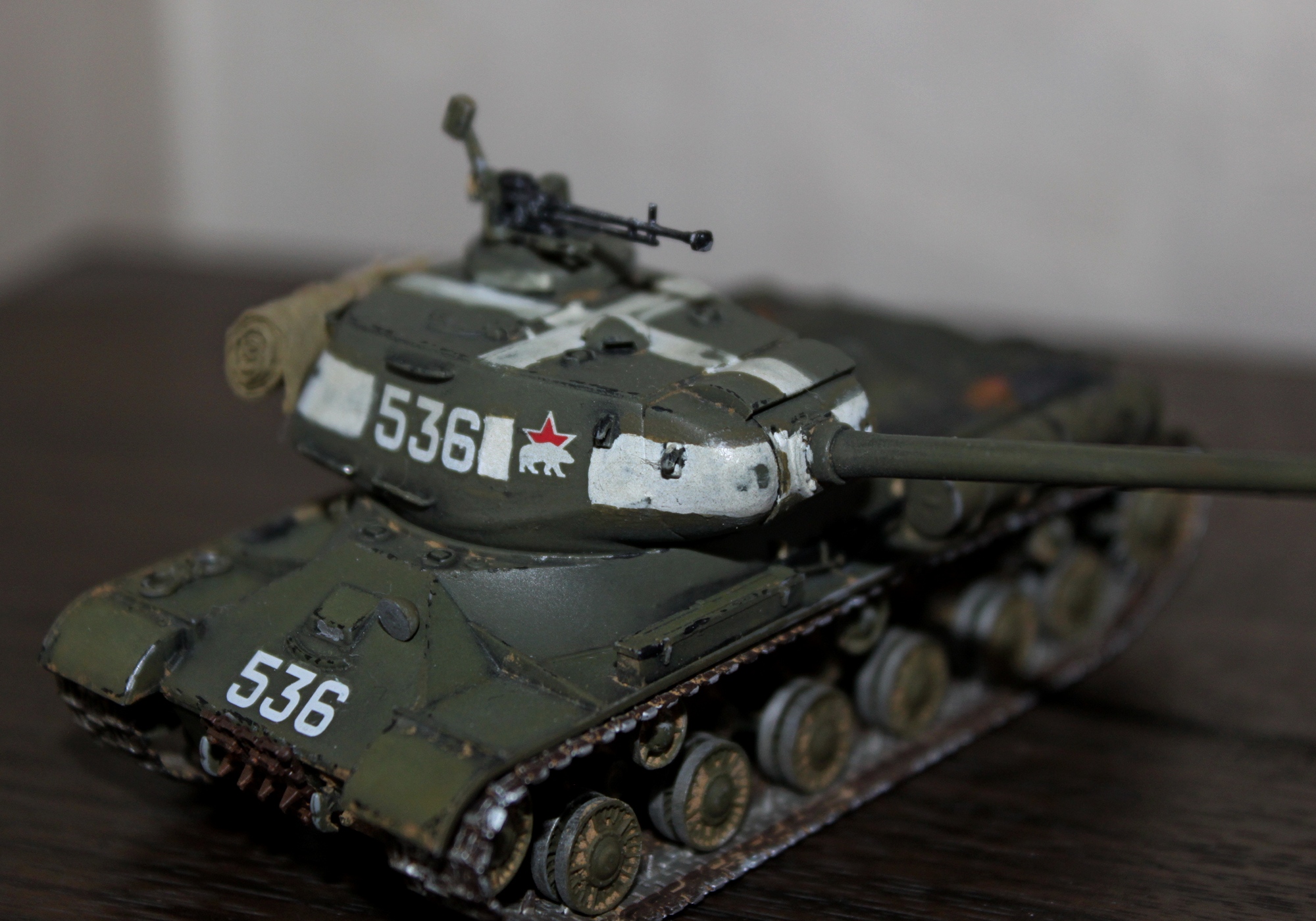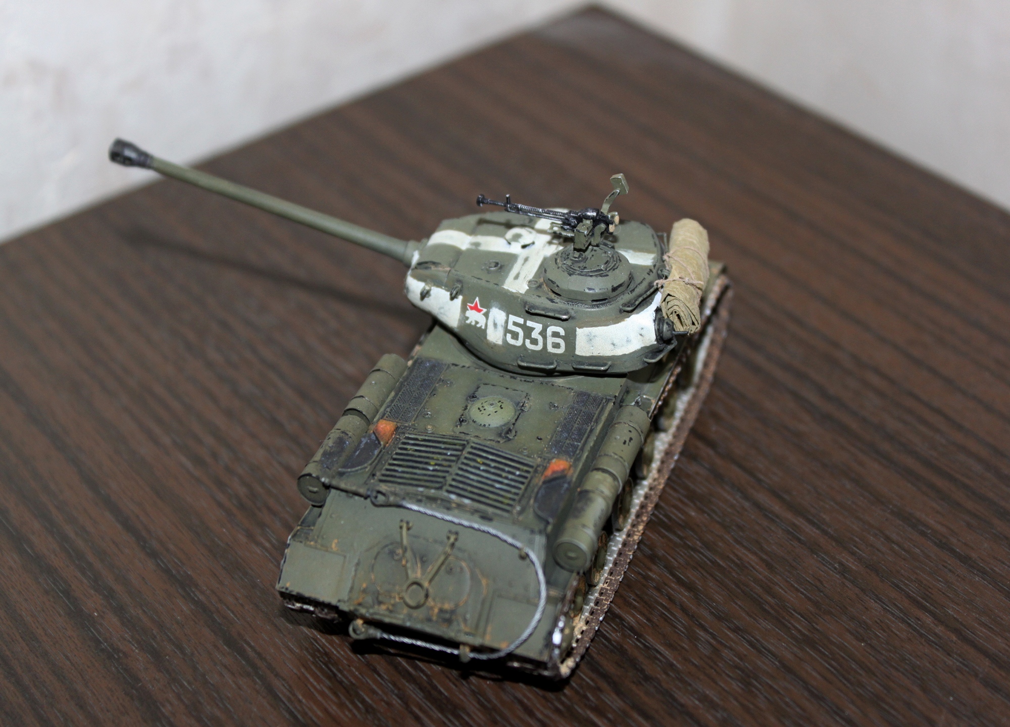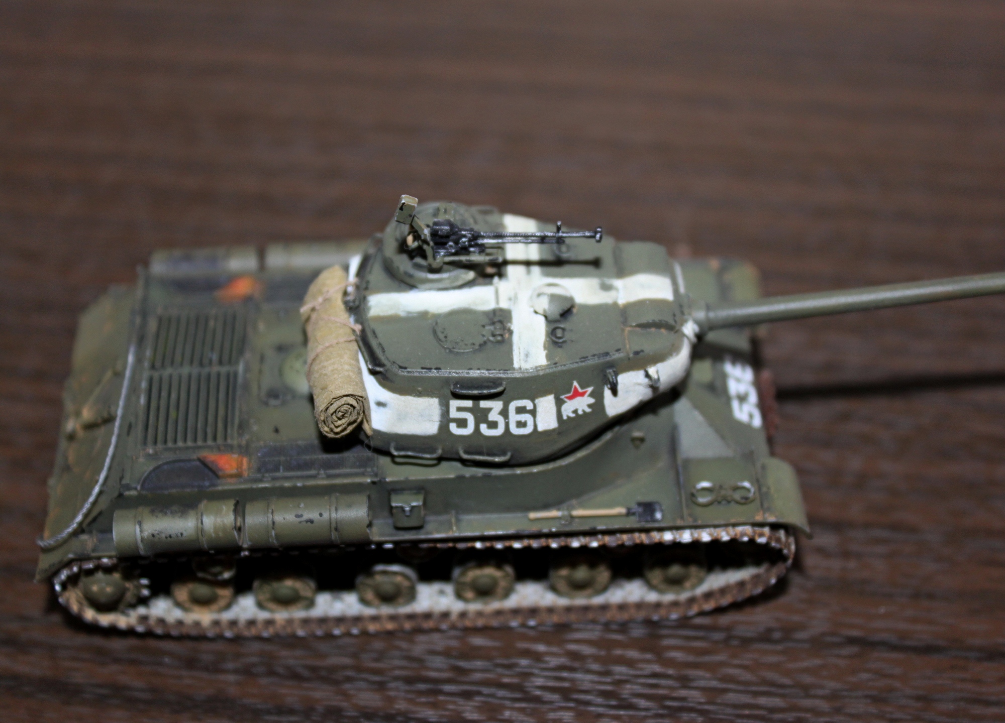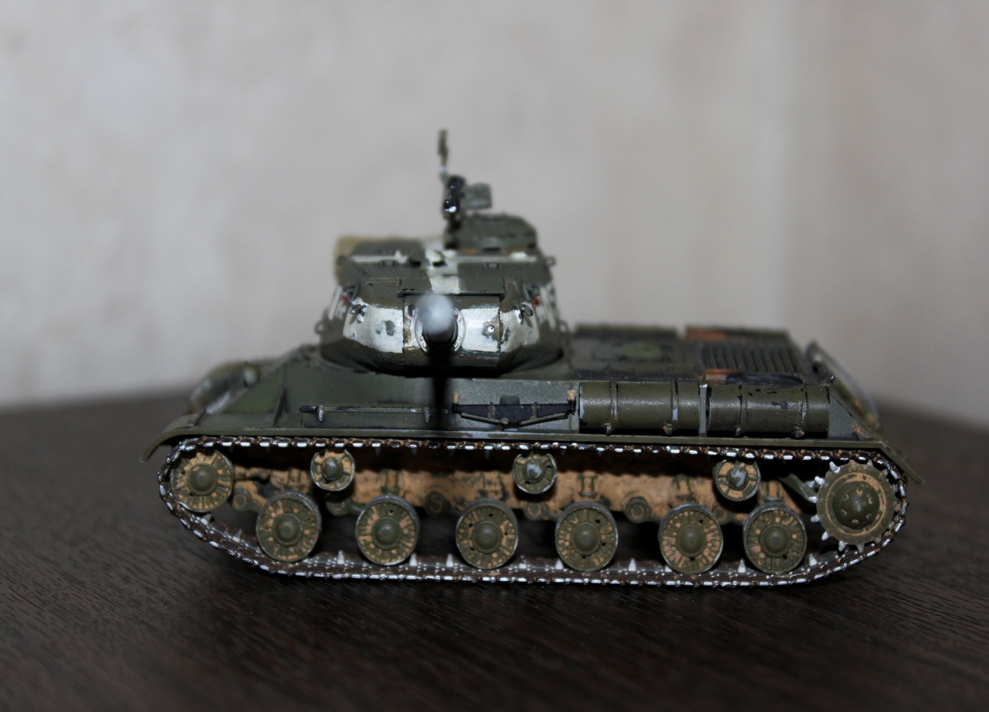 Из очевидных недостатков "грубость" окраски, "серебрянку" имеет смысл "гасить" матовыми проливками или мешать её с танковым серым ну чтобы получить более реалистичный цвет металла.