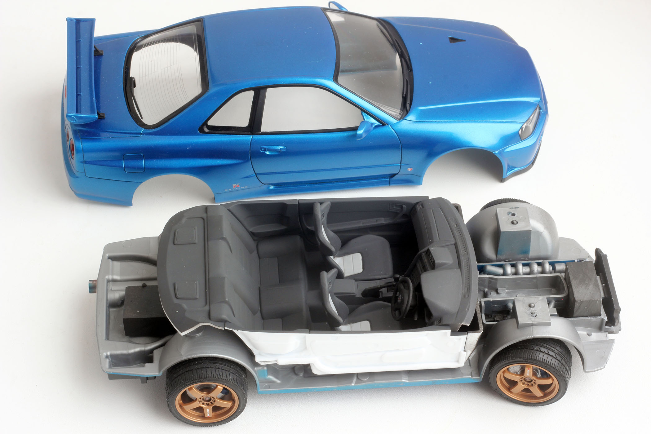 Начну модельный год с дебюта в направлении легковых автомобилей в 24 масштабе. Предыстория такая. В группе Звезды вконтакте проводили конкурс пао ГА и одна из моих тушек заняла там почетное 3 место, чему ч был приятно удивлен. https://karopka.ru/community/user/18236/?MODEL=522877 Мне вручили сертификат на небольшую сумму в одном модельном магазине. Ну и я решил отвлечься от темы самолетов и взял пару коробок со скаями 34 и 33. Начал соответственно с R34. Собрал без доработок. Поворотники на крыльях срезал. Думаю как их изготовить нормальные. Использовал для кузова лак и краску серии Mr. Color. Критика и советы приветствуются.