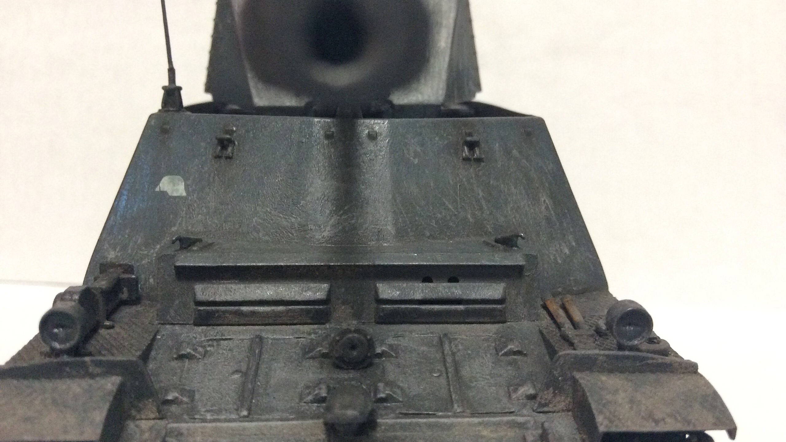 Глушитель ржавый, просто переборщил с грязью) и карандашом проходил, скоро добавлю фото почётче там будет видно. Первый раз фотографировал, навыков пока нет сори) собирал без особых трудностей, шпатлёвкой только нужно запастись, а так норм собирается. С уважением. Буду дальше тренироваться.