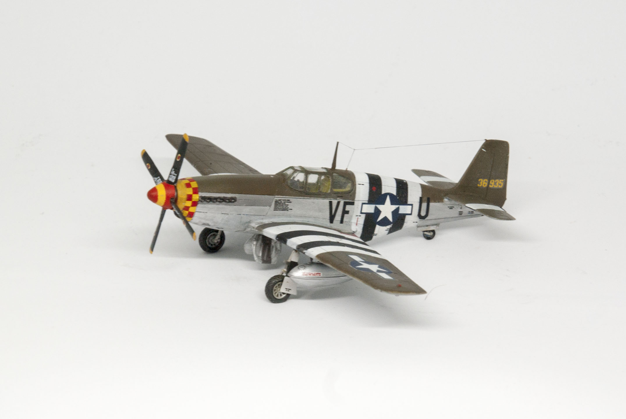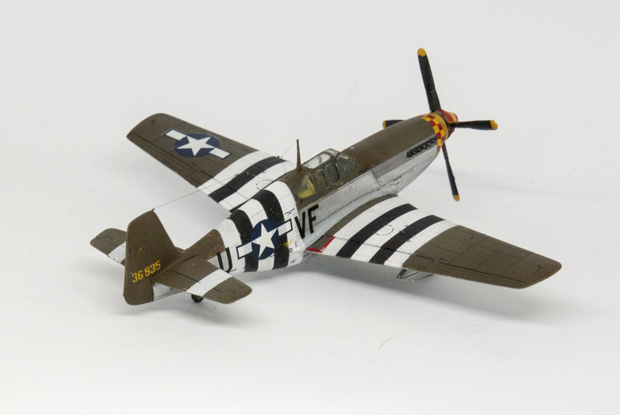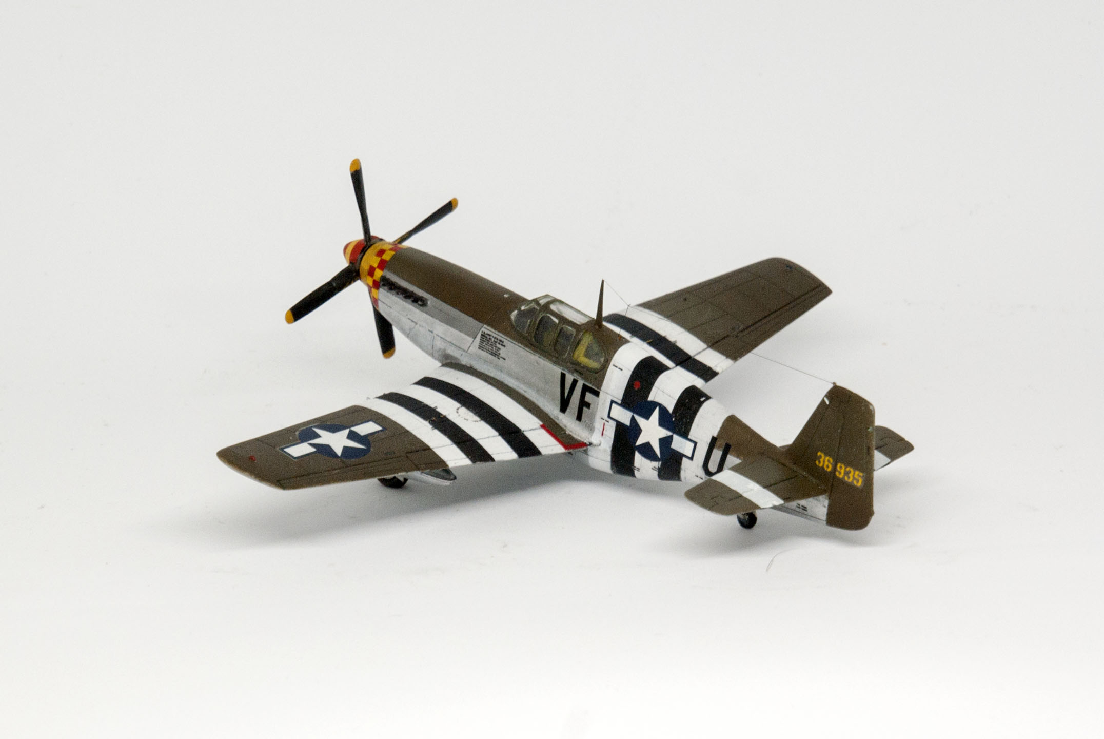 Один существенный косяк состоит в том, что модель красилась под конкретную машину 357FG, но заказанная декаль до меня так и не доехала. В итоге пришлось брать другую декаль и делать "Мустанг" неким усредненным, без привязки к конкретному борту.