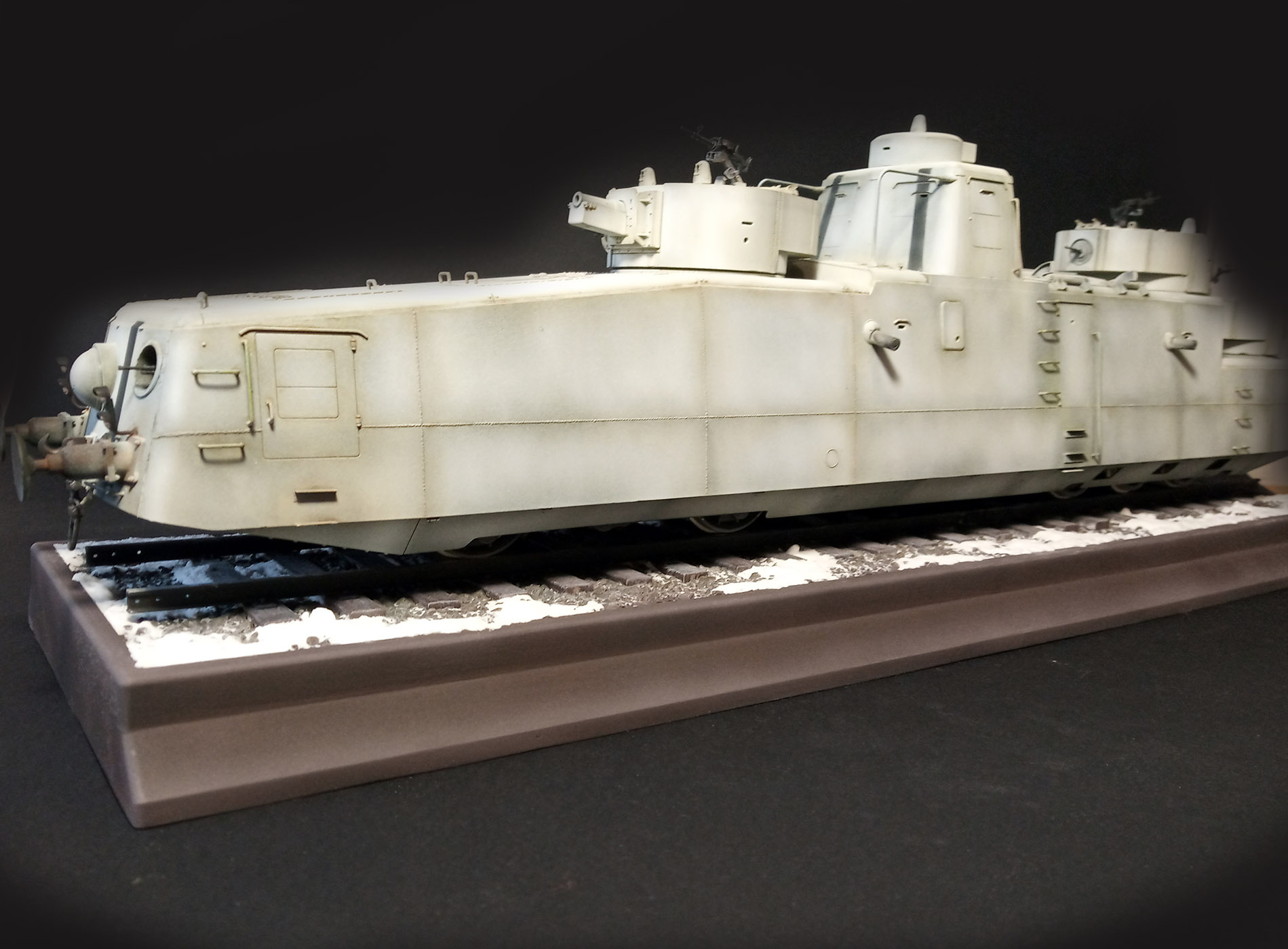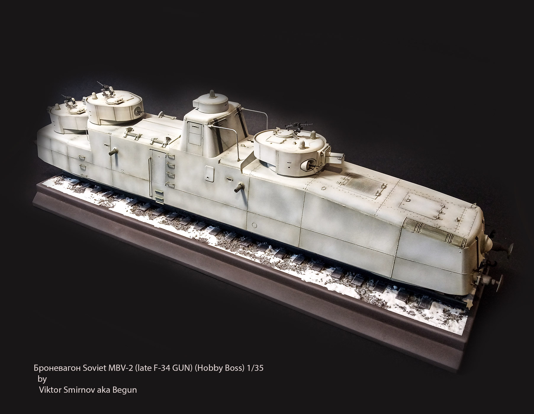 Всем доброго дня. Первая работа в этом году. Броневагон Soviet MBV-2 (late F-34 GUN) (Hobby Boss) 1/35. Я бы не сказал что очень простой набор - некоторые нюансы всплыли после покраски. 1. швы от пресс форм в 0.5 мм - идут по всему корпусу и требуют зачистки + утяжины на всех башнях и в 2х местах на корпусе. Перед покраской рекомендую немного грунтануть и внимательно пройтись по всему корпусу. 2. При сборке основания шпалы даны 3мя листами - но при сборке они не выходят на нужную высоту и рельсы не входят в крепления. Я разобрал крепления шпал и вставлял их по отдельности. При покраске основания решил попробовать акриловый грунт от ZIP - как и ожидалось после снятия скотча половина краски вместе с грунтом осталась на скотче. Вывод : - пользуйтесь качественной химией и будет вам счастье. Всем хороших строек!