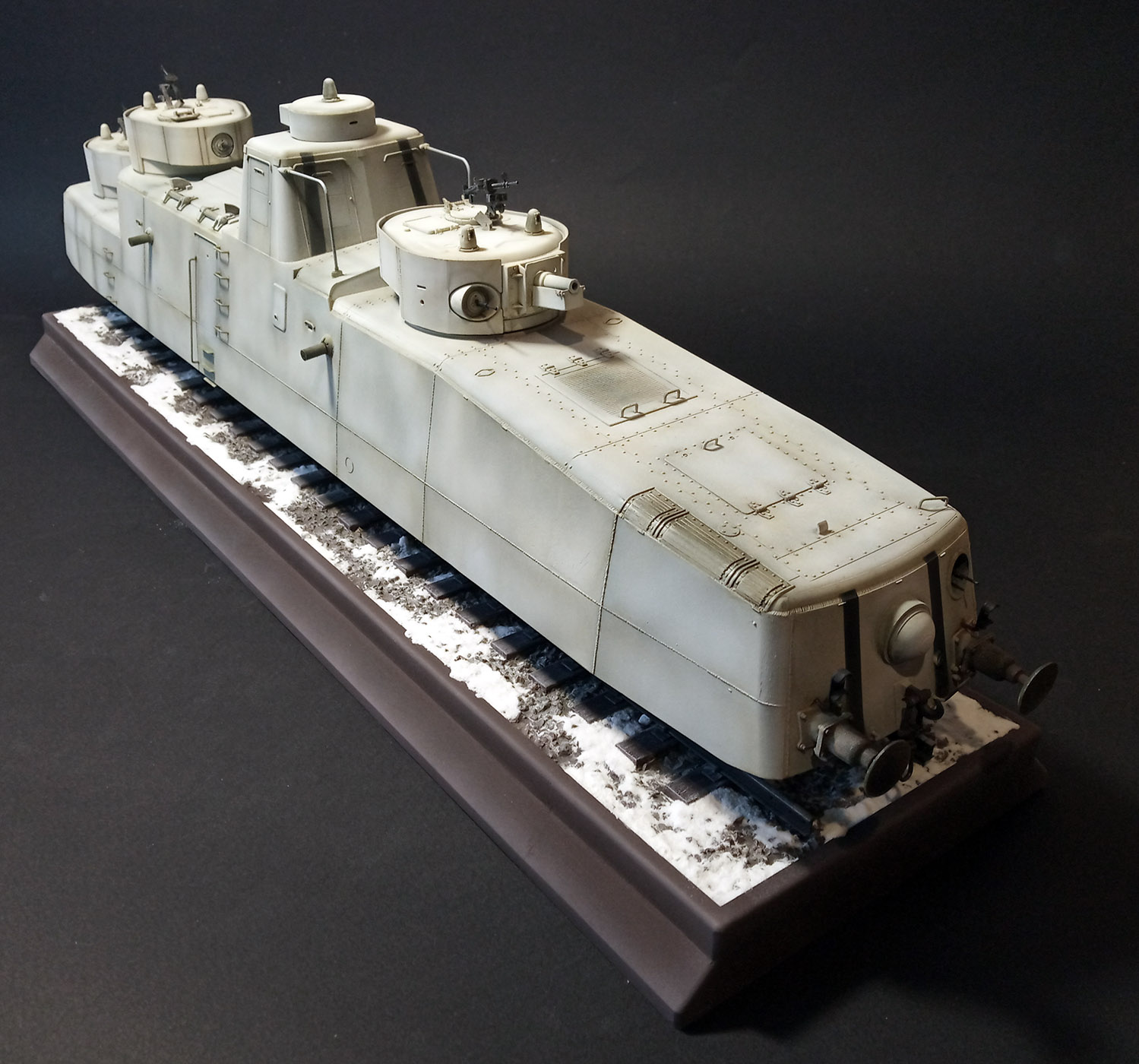 Хорошая работа! Понравилось исполнение самого вагона и подставка очень хорошо смотрится. Недавно делал такой не себе, теперь на очереди стоит уже себе и в камуфляже со шпалами и рельсами.