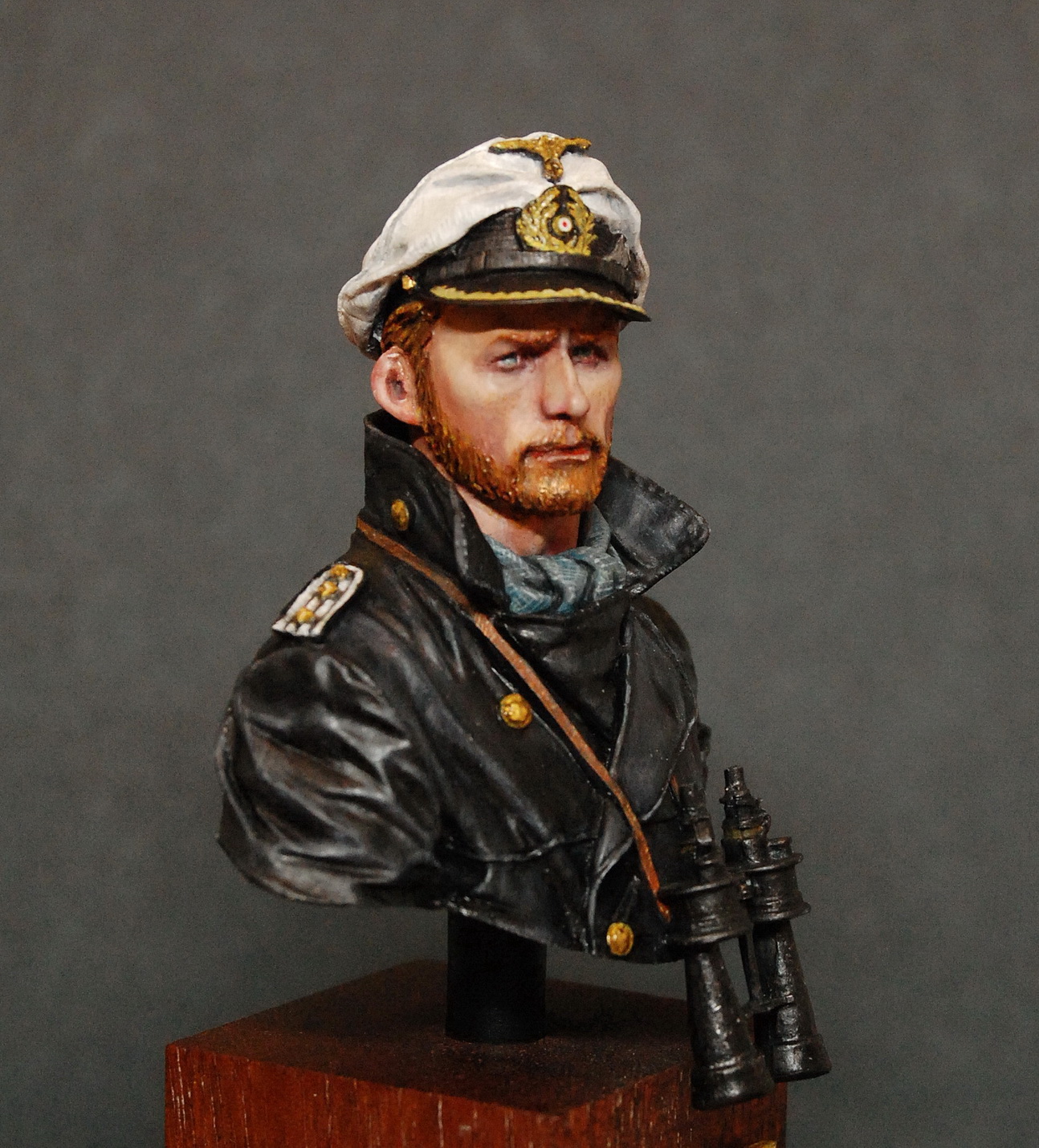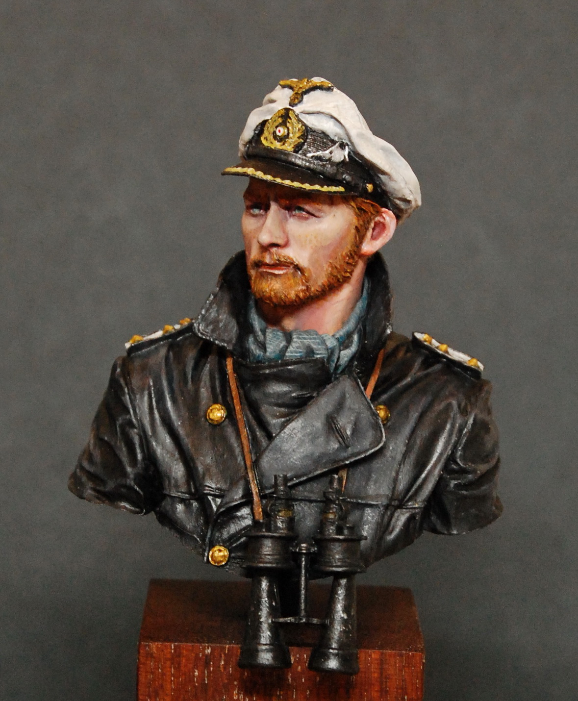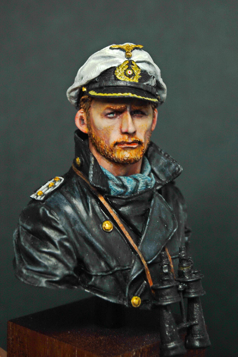 Доброго времени суток! Представляю на Ваш обзор бюст командира немецкой подводной лодки (U-boat commander) периода Второй Мировой войны от корейской компании Young Miniatures (не оригинал). Масштаб 1/10, окрас производил акрилом от Звезда и Vallejo. Сам бюст понравился, проливка достаточно качественная. Бюст создан под впечатлениями от фильма Вольфганга Петерсена Подводная лодка (Das Boot) 1981 года. Данная работа не несет в себе пропаганды Нацизма и Фашизма или героизации данного образа.