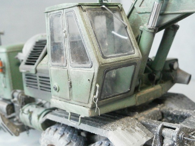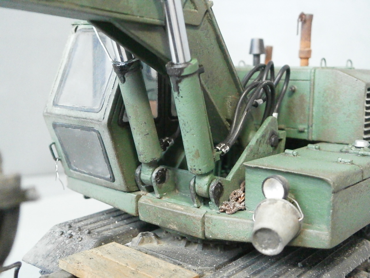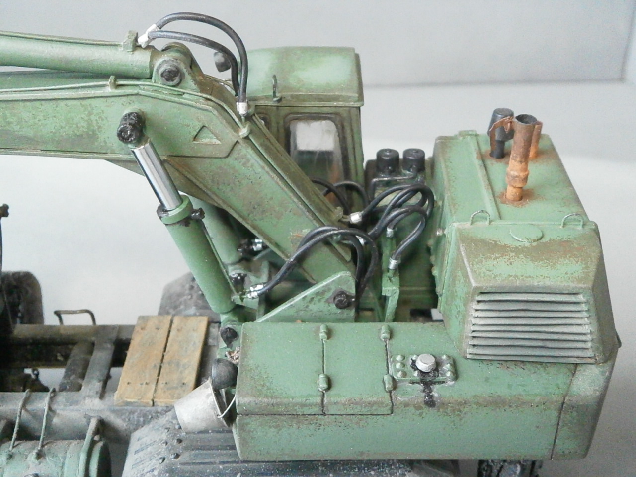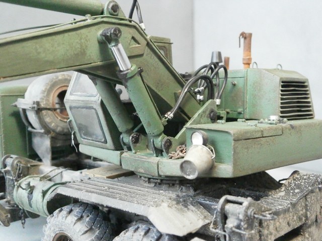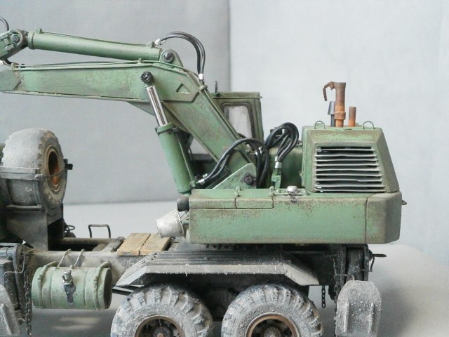 Отличная модель, понравилось практически все, как загрязнена, как выглядят сколы, выхлопные трубы, шланги, ковш, мелочевка, но один эффект выделяется очень сильно, это потеки масла и черное пятно на баке.