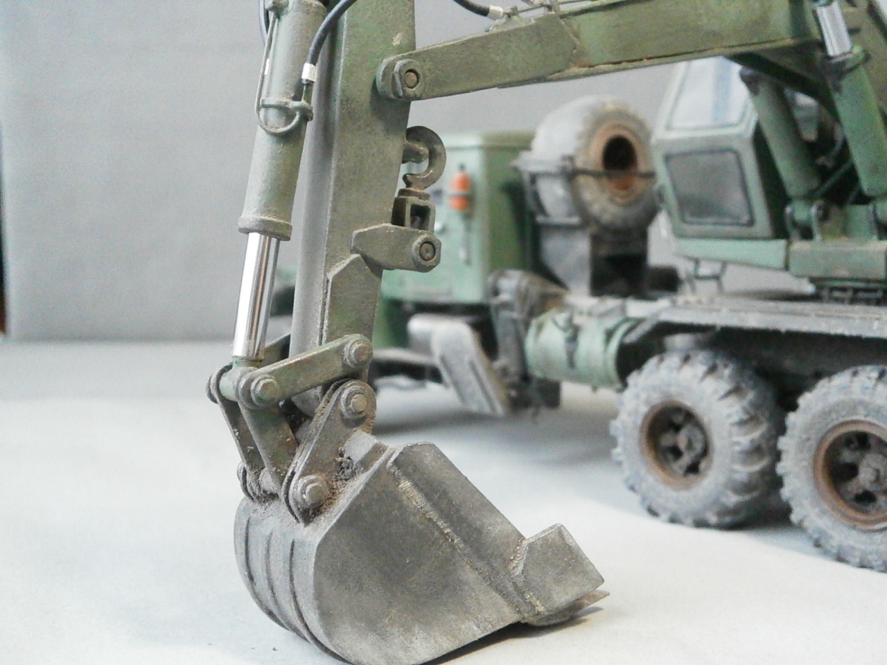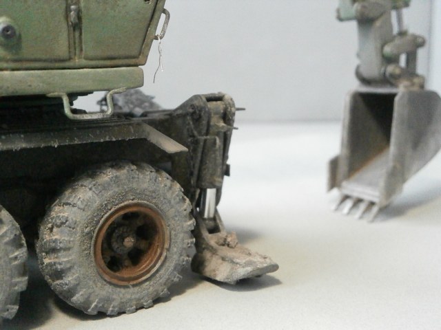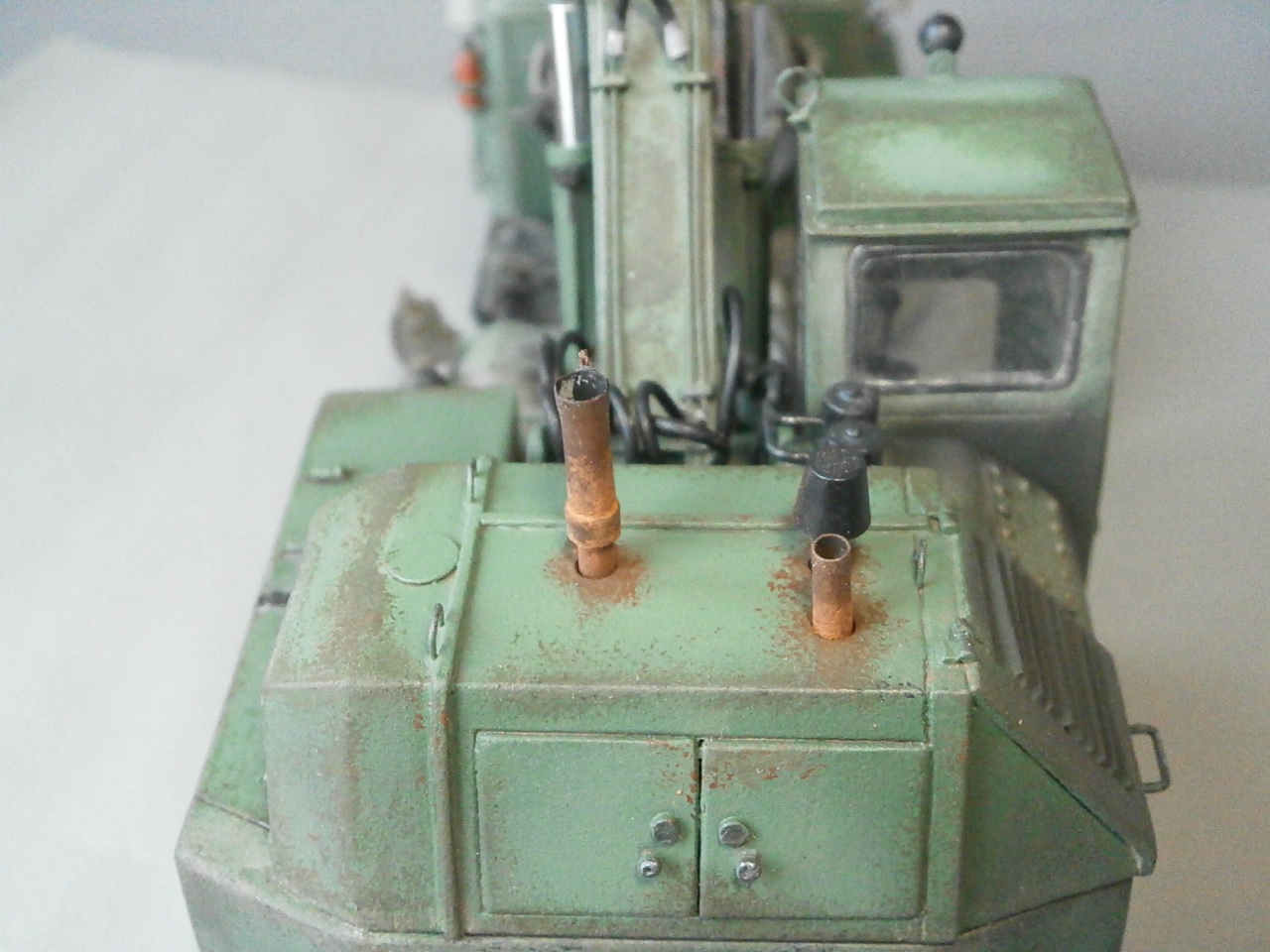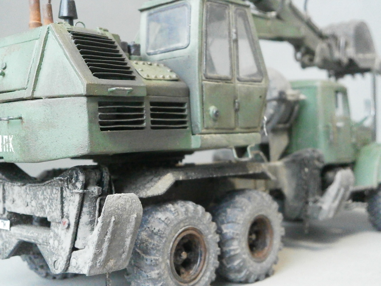 Отличная модель, понравилось практически все, как загрязнена, как выглядят сколы, выхлопные трубы, шланги, ковш, мелочевка, но один эффект выделяется очень сильно, это потеки масла и черное пятно на баке.