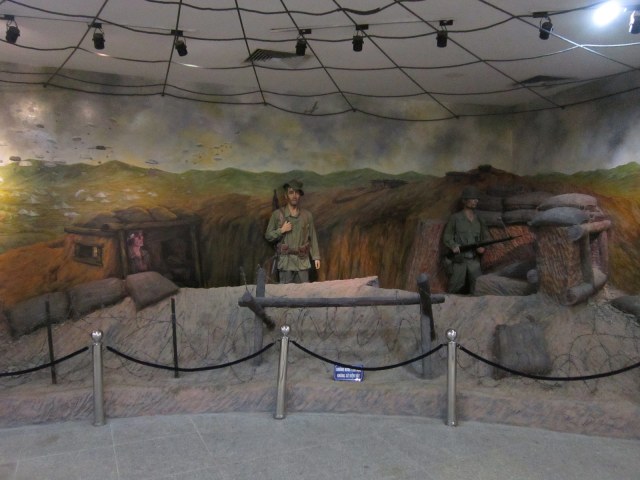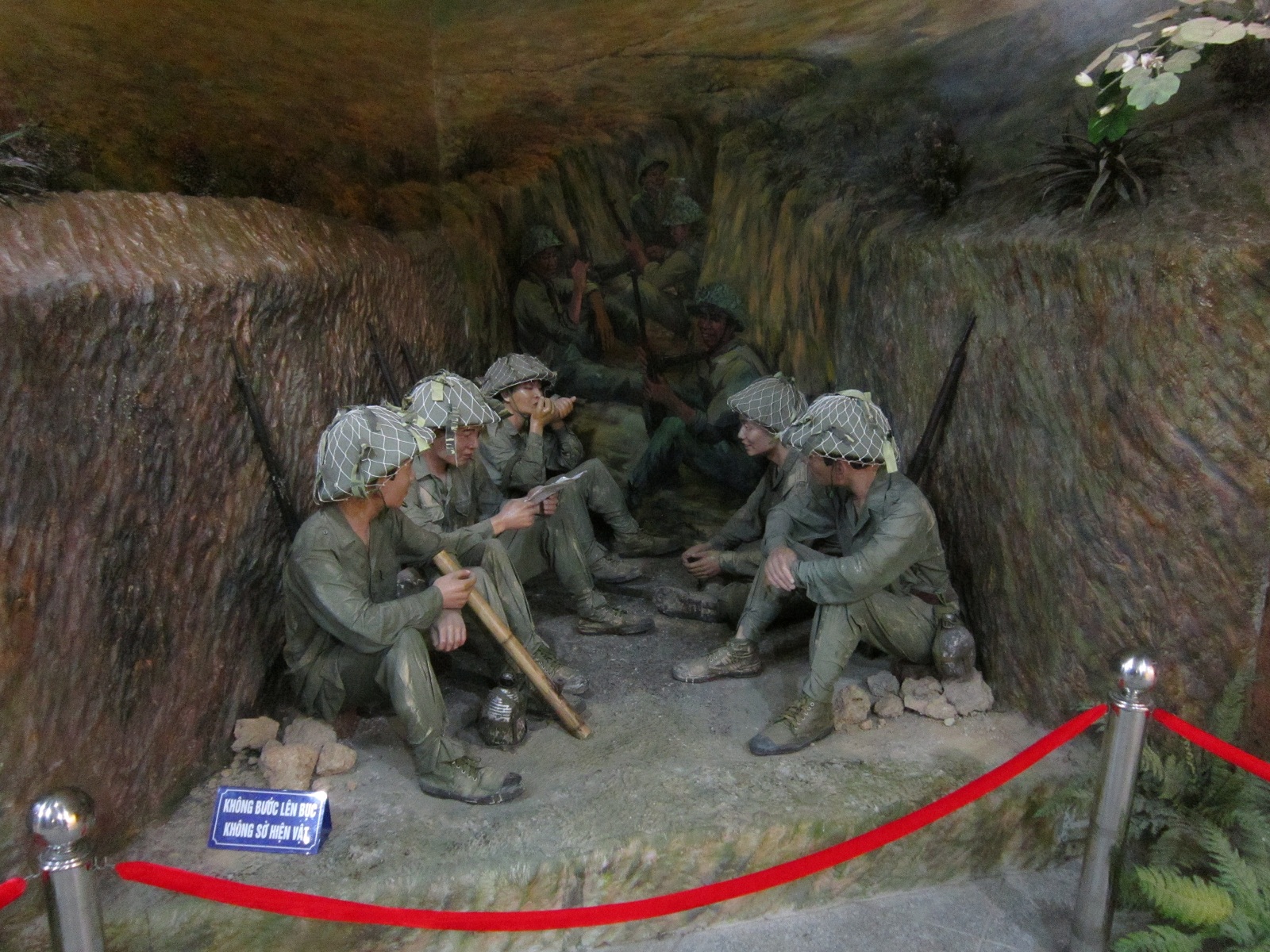 Собственно музей расположен в специально для него построенном здании, как бы врытом в искусственный холм. Основная экспозиция размещена в полукруглых залах на втором этаже. Имеется множество диорам масштаба 1/1, изображающих бойцов и командиров Вьетминя в ходе различной боевой деятельности, бойцов вспомогательных частей и гражданское население занятых на постройке дорог и доставке предметов снабжения. В отдельном "домике" заседают высшие руководители, среди которых узнаются Хо и Зиап. Так же в макетах представлен и противник, однако если вьетнамцы показаны нормальными людьми, французские солдаты поголовно изображены этакими печальными алкашами, "квасящими" в блиндажах или тупо глядящими вдаль унылыми, пропитыми рожами. Ну, они художники, они так видят.))