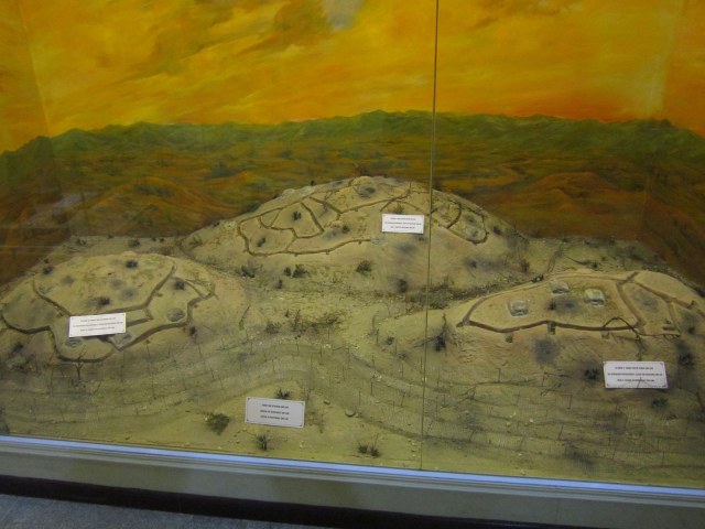 Отдельно следует сказать о макетах укреплённых позиций и схемах сражений за них. Схемы хорошие, подробные и интересные, но если макеты ещё имеют подписи на английском, то вот они исключительно на вьетнамском. Единственное, что можно на них понять, это даты и номера частей. Человеку с ходом сражения не знакомому, от них толку будет мало. Кроме всего прочего, названия позиций, используемые вьетнамцами отличаются от принятых на Западе(и, соответственно, у нас), что может дополнительно запутать.