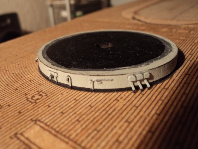 · Все катушки с канатами по всей модели были заменены на другие имитирующие катушки в брезенте, сделаны из круглого карандаша обточенного до нужного диаметра, боковины закрыты пластиковыми круглешками.