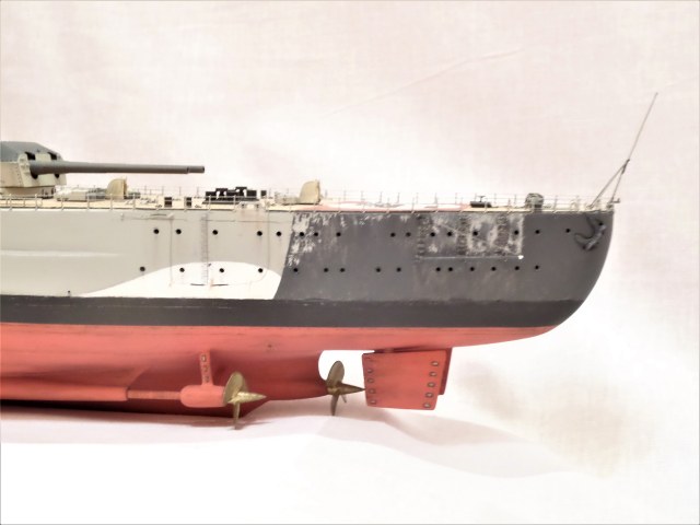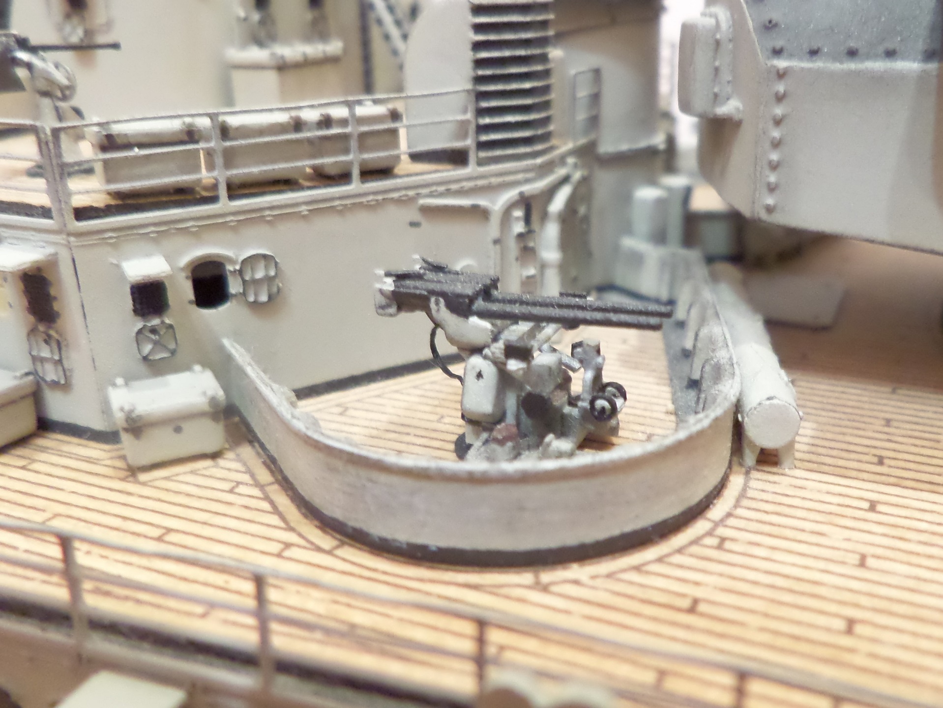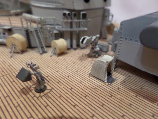 · Мостик у трубы, кормовые посты управления ЗА, спонсоны орудий тяжелой ЗА, дополнены силовыми элементами из пластика.