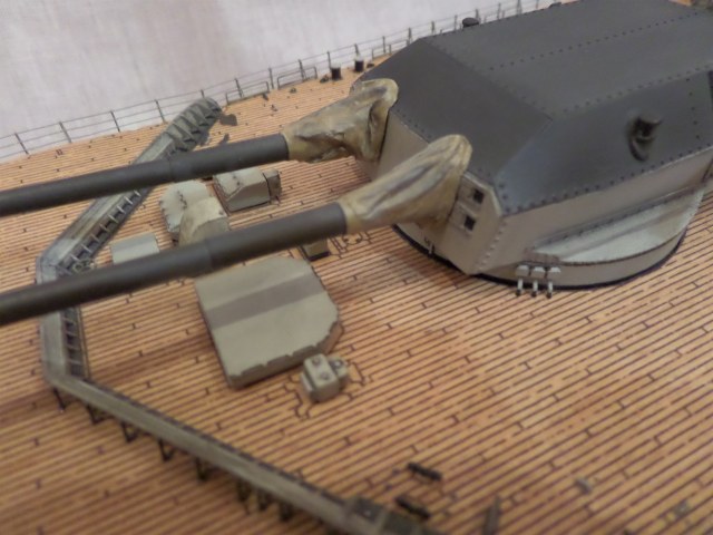 · Выступающие округлые части башен у барбета были сточены для имитации «порожка».