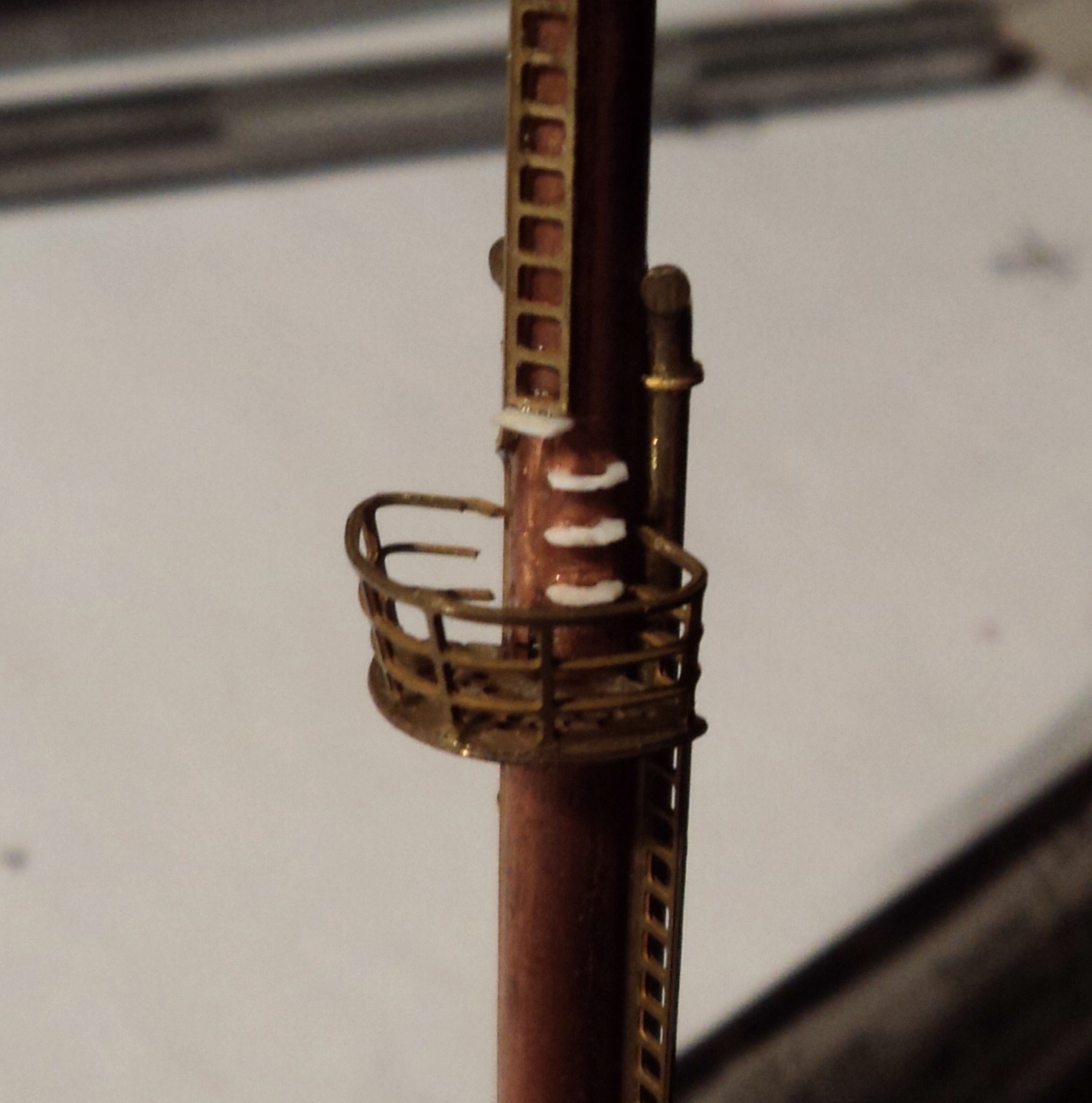 · Сделаны подпорки из проволоки 0.5 мм под площадки «фирлингов» и кормовую часть адмиральского мостика.