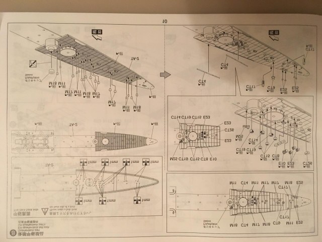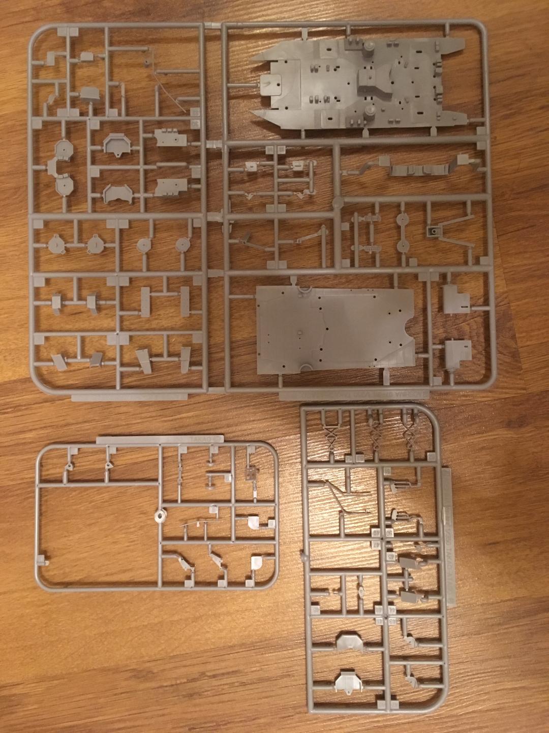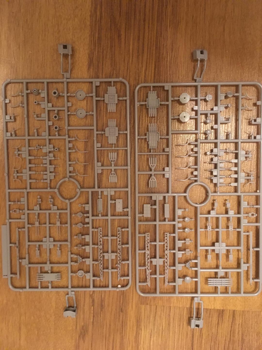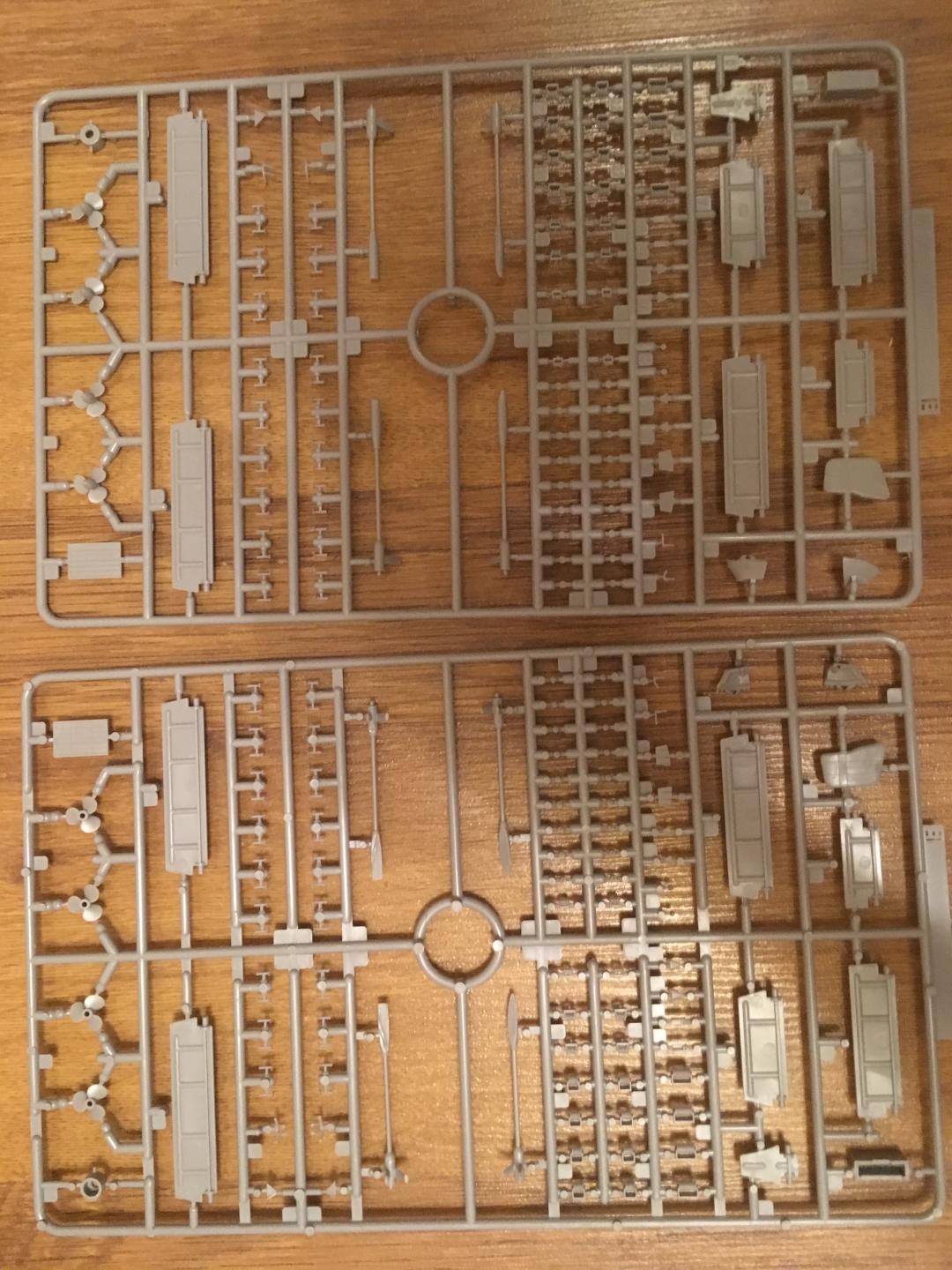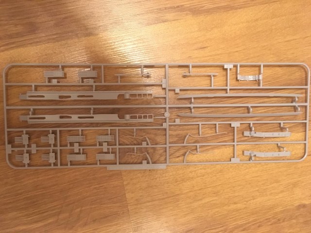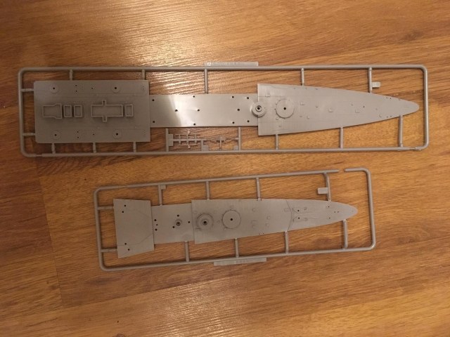 1. 17 литников, а именно: корпус (собирается по шпангоутной системе, с расшивкой и иллюминаторами), противоторпедные були (идут отдельно, что позволяет собрать корабль как до, так и после модернизации), элементы палубы (дана несколькими деталями, с разметкой линолеума и наличием небольшого числа ящиков, которые придется спиливать...), бортов, торпедные аппараты, винтовая и рулевая группы, различные элементы надстроек, трубы, мачты, краны, башни ПМК, зенитные пулеметы, ПУО и ПН, дальномеры, катапульты и подъемные краны гидросамолетов подставка под корабль (двух видов: съемный вариант и на винтах (винты, естественно, в комплекте)) и еще куча всего. При чем все это очень хорошо отлито в пластике (стал задумываться над тем, что зря потратил деньги на травление :):):)