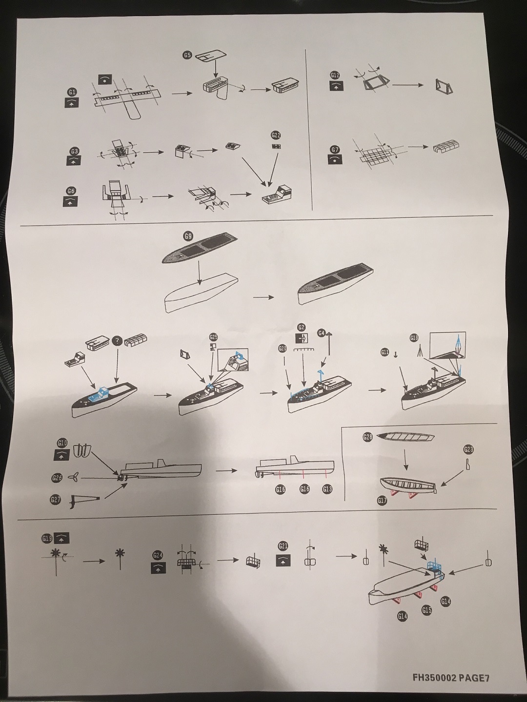 3. Инструкция! Чувствую - это боль и ад этого набора. Мало того, что при таком количестве деталей она могла бы быть поподробнее, так еще и порядок сборки так абсолютно не продуманный. Ну да ладно, как-нибудь разберемся + у нас же есть инструкция по ФТТ от FlyHawk (до нее скоро дойдем)! О достоинствах: бумага хорошего качества... Пожалуй, всё!) Сделал фото всех страниц! Любуйтесь, пожалуйста!