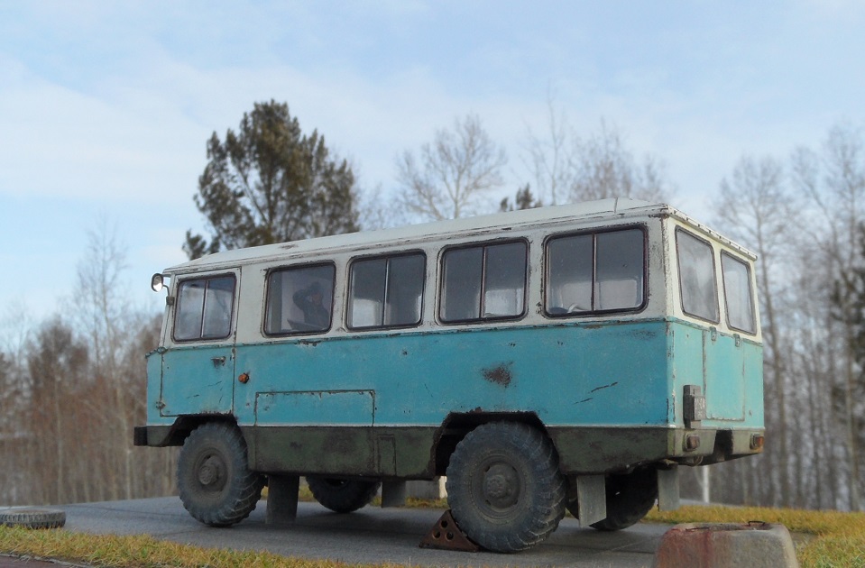 Всем привет! Доделал очередную новинку от AVD Models, автобус на базе легендарной "Шишиги" -Газ 66! Автобус повышенной проходимости (АПП) на шасси полноприводного автомобиля ГАЗ-66 заменил в середине 70-х годов ХХ века в производстве автобус 38АС. АПП-66 точно так же продолжал изготавливался только для нужд Министерства обороны СССР и до 1987 года было изготовлено более 800 штук этих автобусов. Сегодня автобусы АПП-66 ещё остались в небольшом количестве в эксплуатации в Армии, но большинство или уже списаны или попали в частные руки. Я если честно и не знал о такой технике, но благодаря AVD Models я с ней познакомился. Кузов модели полностью металлический, отлит очень хорошо. Остальное пластик, рама от Газ 66, колеса так же от этой модели, ходовая передана хорошо. Салон достаточно детализирован, кресла собираются из 2 частей что удобно в покраске. Фототравленые дворники и резиновые покрышки. Собираемость на 5! Мне очень понравилась работать с этой моделью , окрашивал Мотип голубой, белый, хаки.Приятного просмотра!