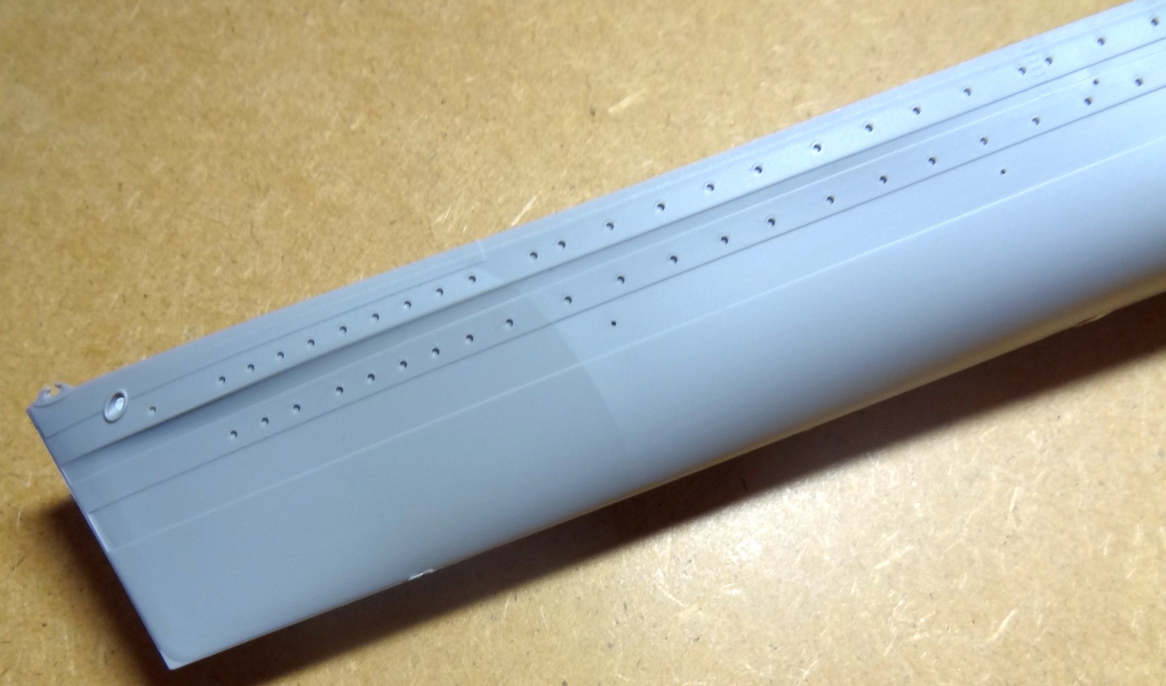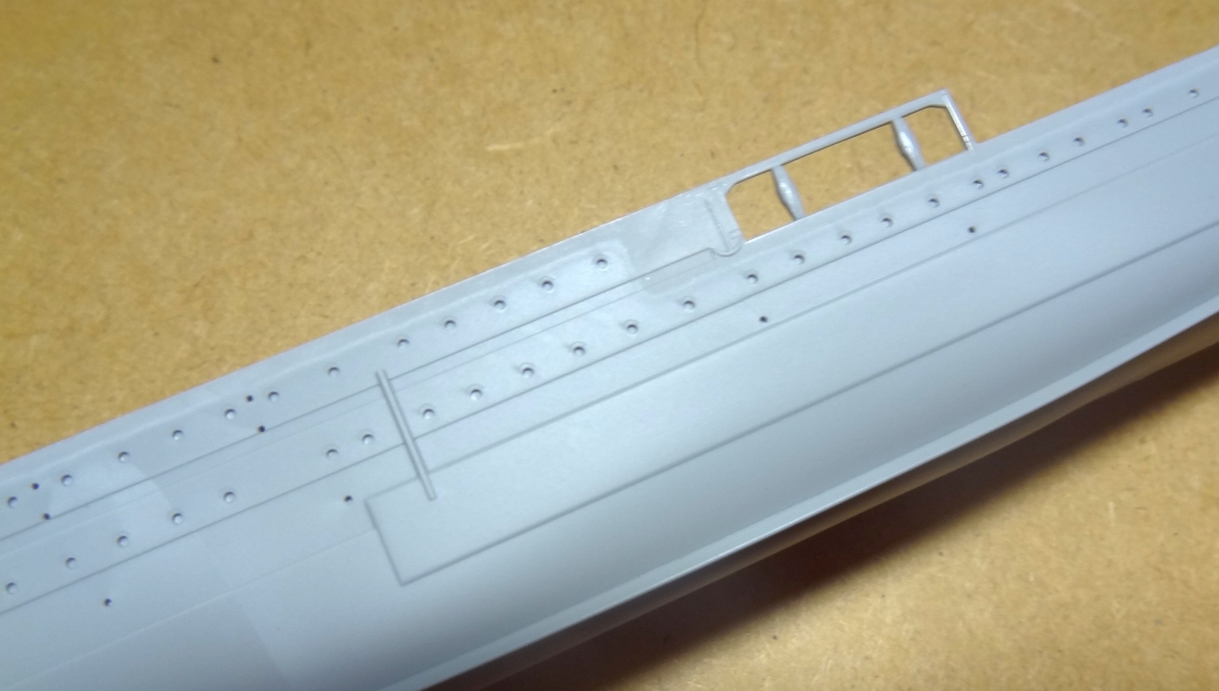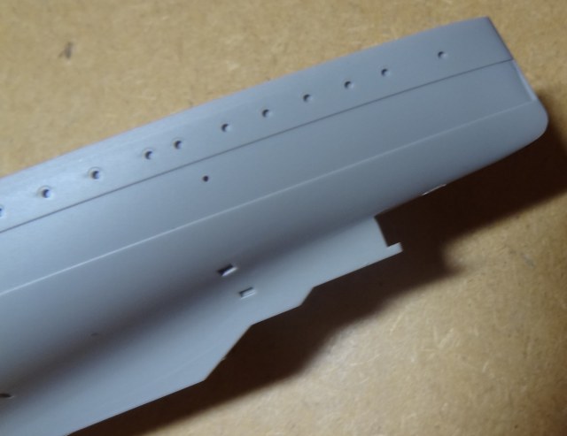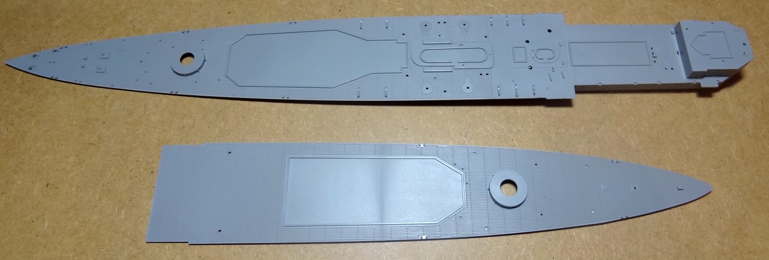 - корпус, отлитый одной деталью (что хорошо, т.к. стыкуемость корпусов разделенных по ватерлинии у Трумпетера оставляет желать лучшего по моему скромному опыту).