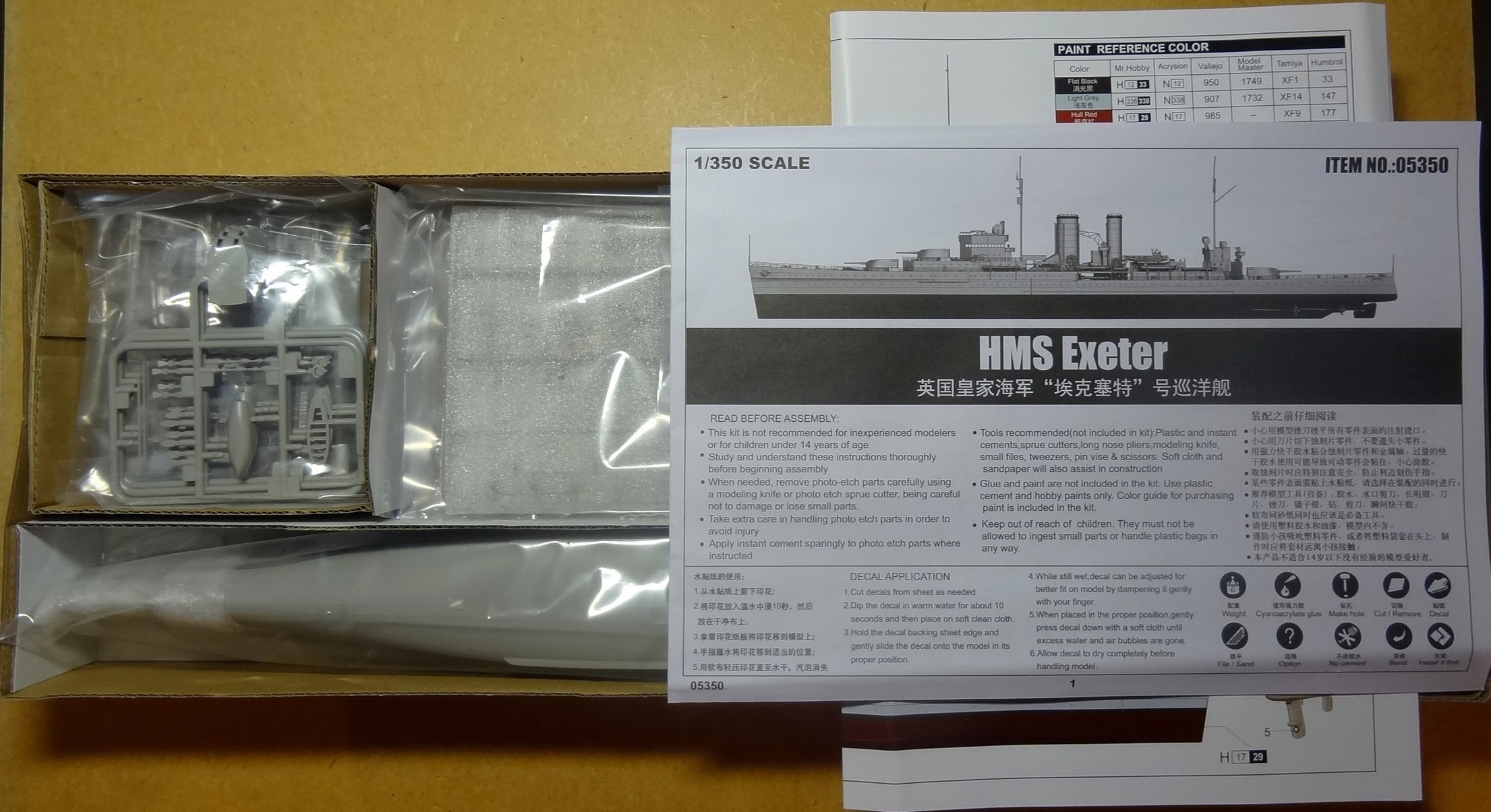 Доброго времени суток, коллеги. Представляю свой первый обзор на Каропке. Новинка от Trumpeter - британский тяжелый крейсер "Exeter" в масштабе 1/350. Еще со статей в Моделисте-Конструкторе был интересен этот корабль. Так что вопрос брать или не брать недолго был вопросом.