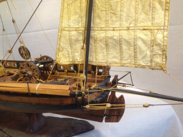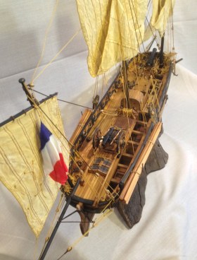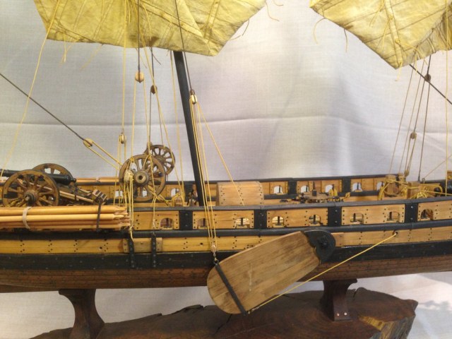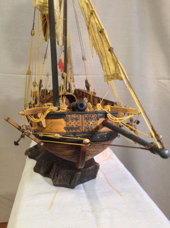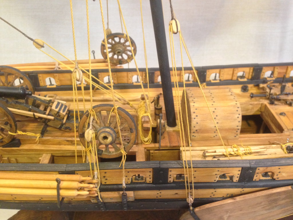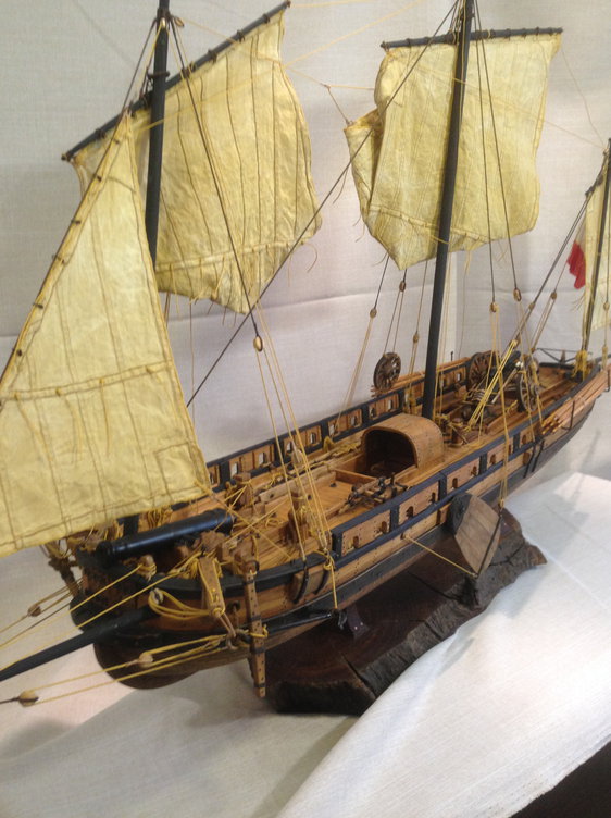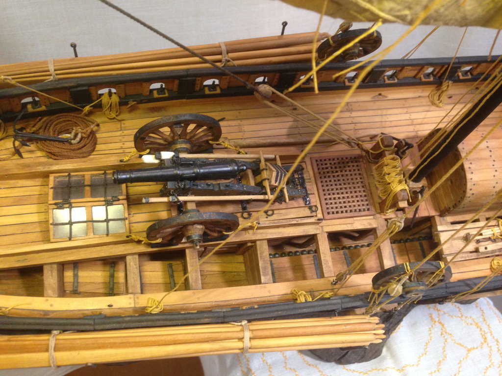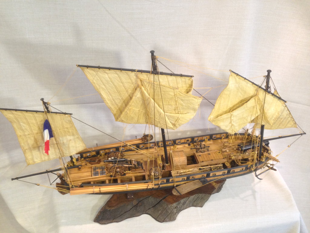 Масштаб 1:30 . Материал груша. Года 4 назад попался мне этот корабль в интернете, начал собирать инфу. Нашлось совсем не столько сколько хотелось бы - обрывки чертежей их монографии и фотки моделей французских моделистов (две модели вообще ни о чем , одна на очень хорошем уровне - ее и взял за основу. Там можно было много что увидеть, по чему не было вообще инфы.....) Переработал чертежи в свой масштаб и через два года начал стройку (очередь была.....) Корпус сделал скорлупой , что бы собрать полностью всю внутрянку.... Ее правда плоховато видно, но резать борт тут не хотелось. Половина палубного настила отсутствует через него и можно все рассмотреть внутри....... Строил два года без месяца. Не обошлось, к сожалению, и без косяков. Особо явные переделал, некоторые остались. Без них пока не получается........ Особое удовольствие доставила сборка пехотной пушки. Полный комплект с лафетом и сопутствующим, она представлена в галерее отдельно.