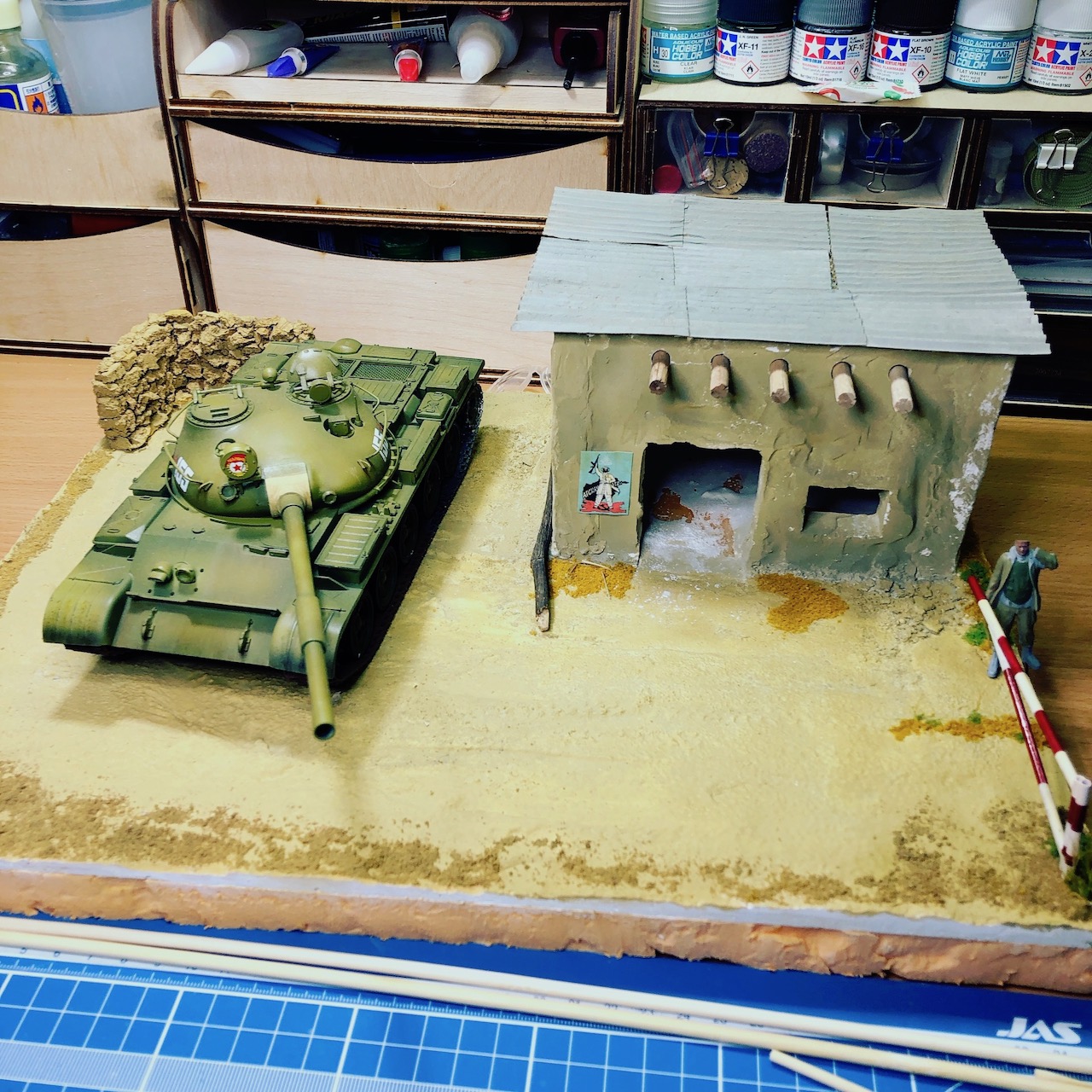 Это первый опыт создания диорамы. Вдохновился темой войны в Афганистане благодаря отличной модели от тамии - танку т-62а.