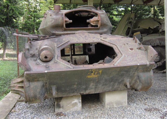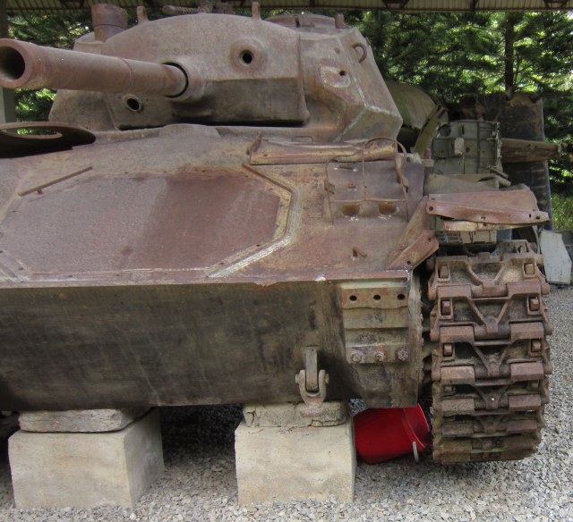 У подножия холма, на огороженной сеткой площадке стоят в ряд три танка, "Ratisbonne", "Auerstaedt", "Ettlingen". Идентификация первых двух вопросов не вызывает - в начале девяностых, ещё когда они стояли в районе бывшего опорного пункта "Изабель", их опознал бывший командир взвода, Прео. А вот с третьим сложнее. На некоторых фото указано, что это "Posen".