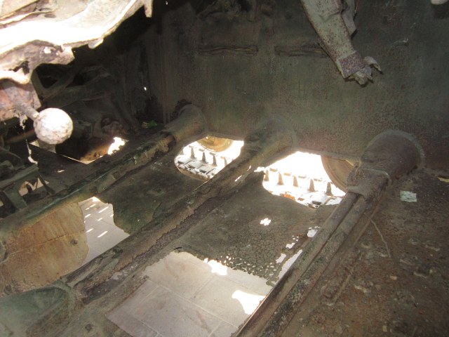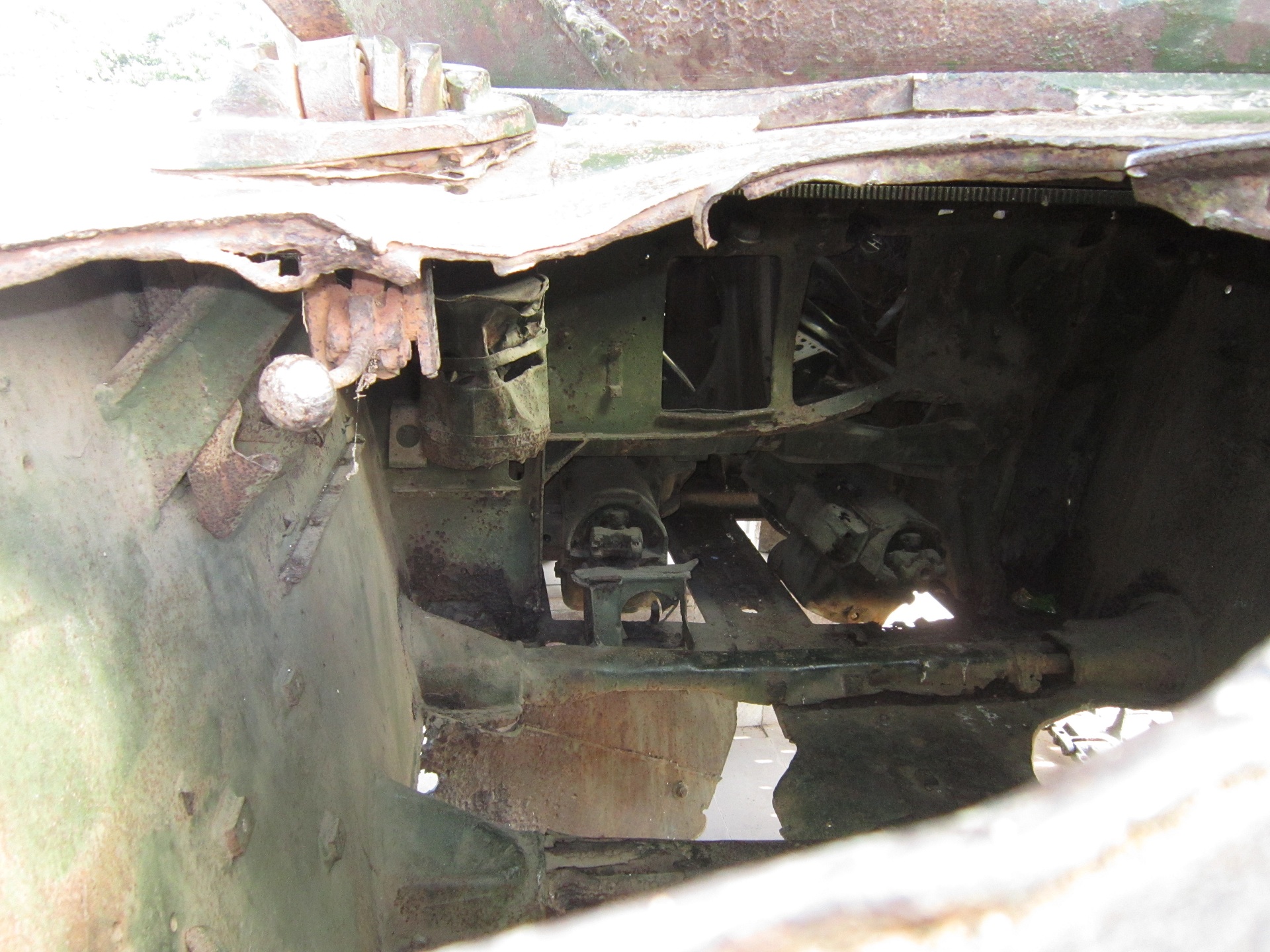 Самый известный танк эскадрона, в правильности опознавания которого нет никаких сомнений и который чаще всего встречается на фотографиях туристов, это "Bazeille". Танк был подбит из "Базуки" и лишился хода во время контратаки на "Элиан 2" в ночь с 31.03. на 01.04.1954. В целях недопущения захвата противником был подожжён экипажем при отходе. Он так и стоит на холме, где был подбит, хотя и не на том самом месте. Днище под башней разорвано, края отогнуты вниз, вероятно в результате взрыва боекомплекта. У всех других танков оно просто проржавело до дыр, как я полагаю, из-за годами стоявшей внутри дождевой воды. Кроме того, это единственный танк, у которого сохранилась часть панелей, закрывающих моторное отделение и кое какая начинка в нём(судя по старым фото, остовы двигателей были так же внутри танка "Auerstaedt", но так как он сейчас стоит за металлической сеткой, с кормы к нему не подобраться). Ящик на крыле слева сзади - скорее всего индивидуальная особенность этой конкретной машины.