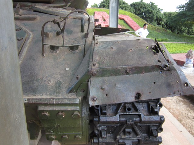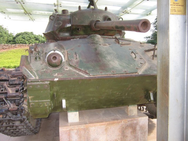 Когда она была снята точно неизвестно, но танк на ней уже разукомплектован, корма заварена листами железа, краска облезла. Сама же надпись при этом яркая, явно новая. Если же внимательно взглянуть на кадры вьетнамской хроники, снятой сразу после сражения, где танки ещё в камуфляже и не размародёрены, то становится очевидно, что прав всё таки француз.