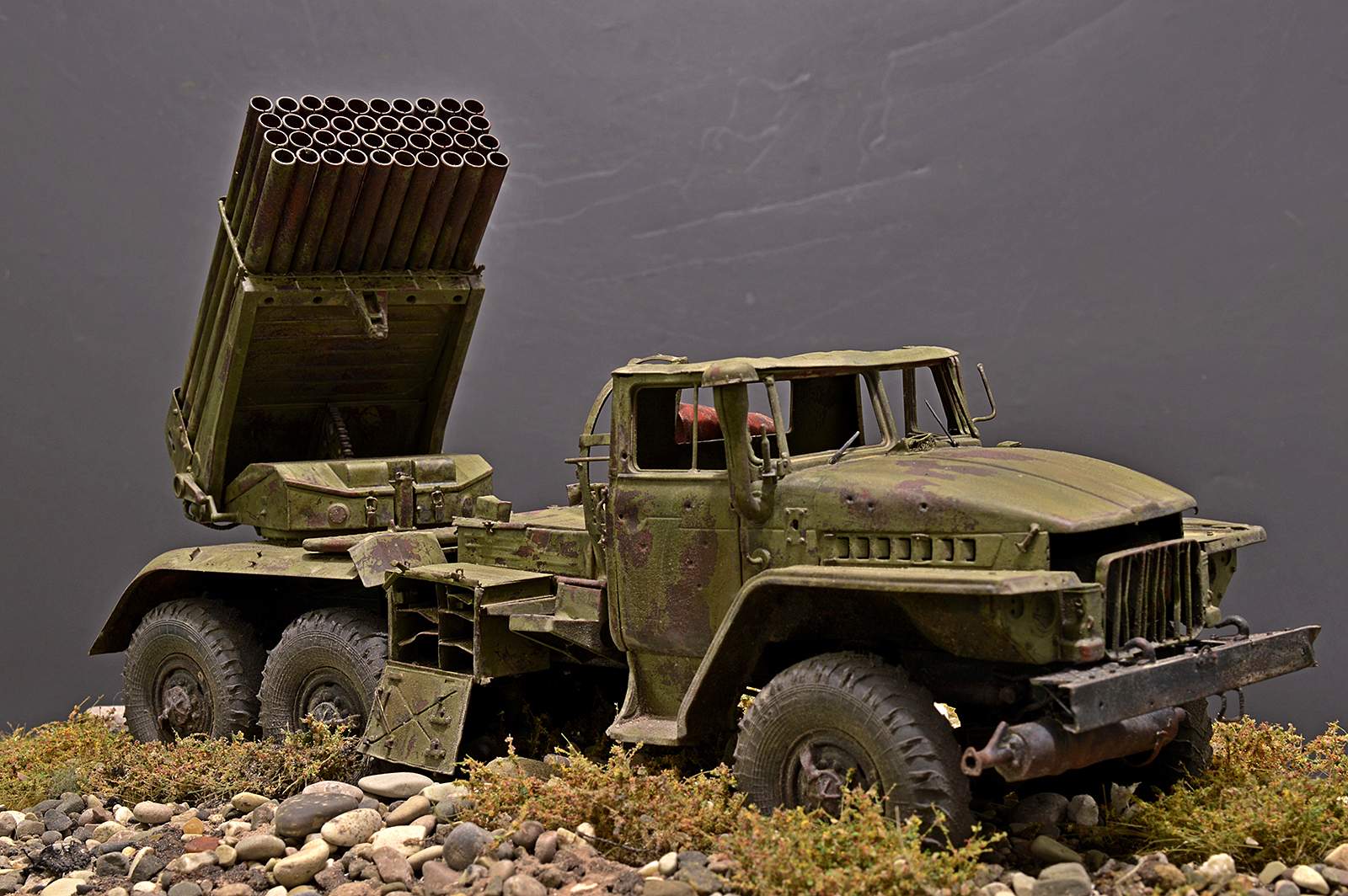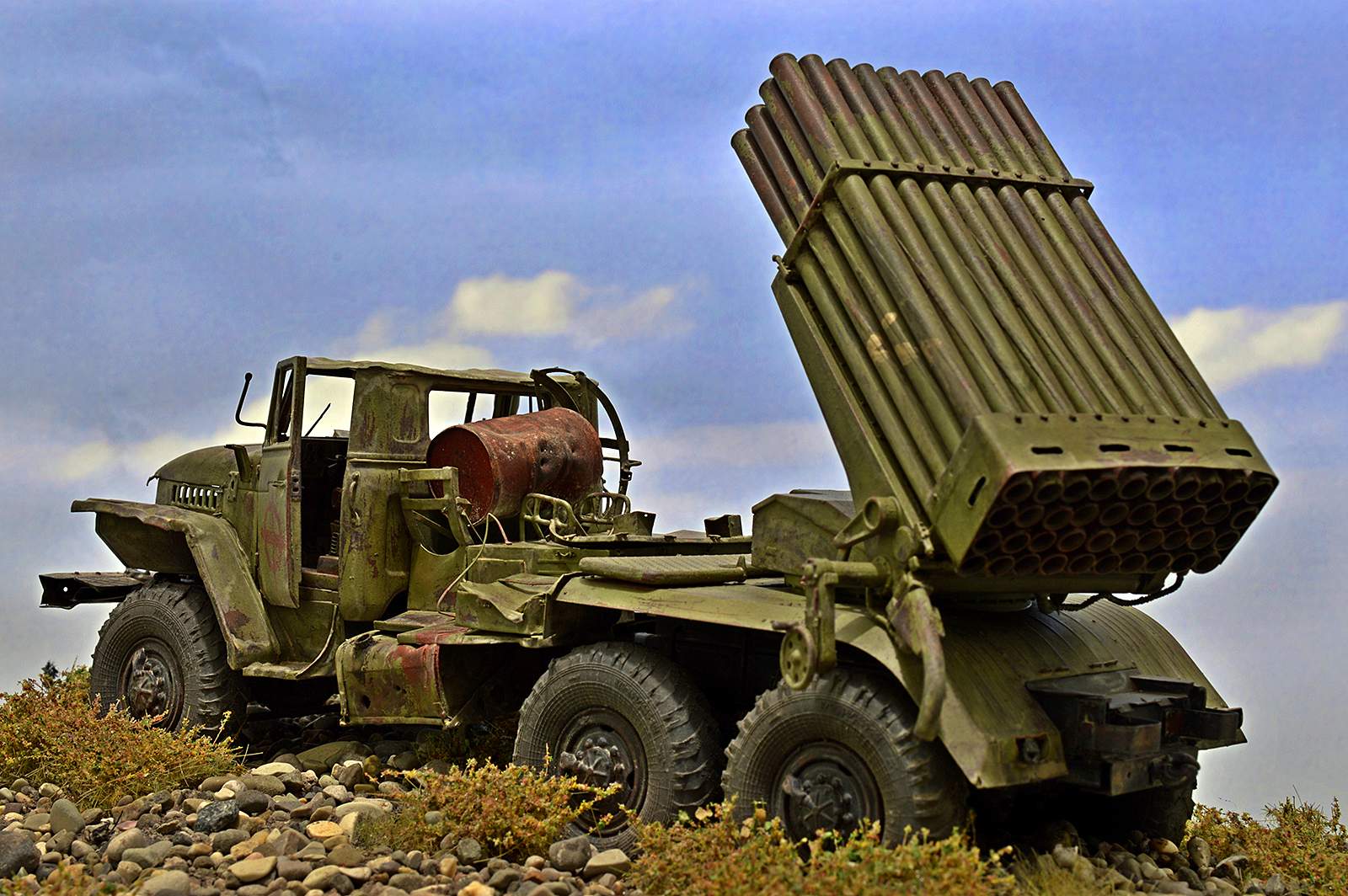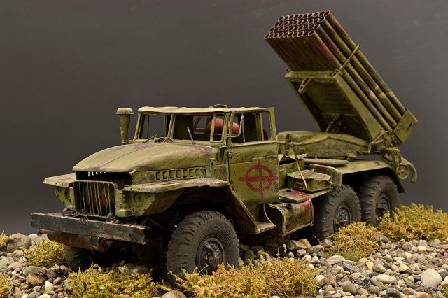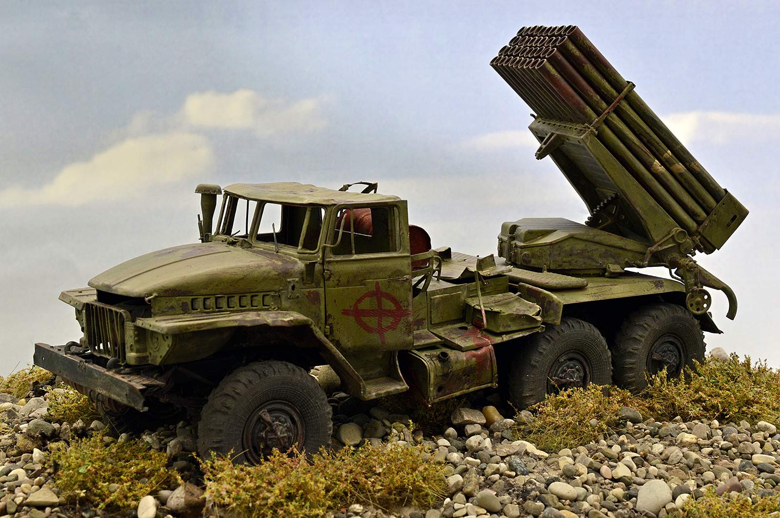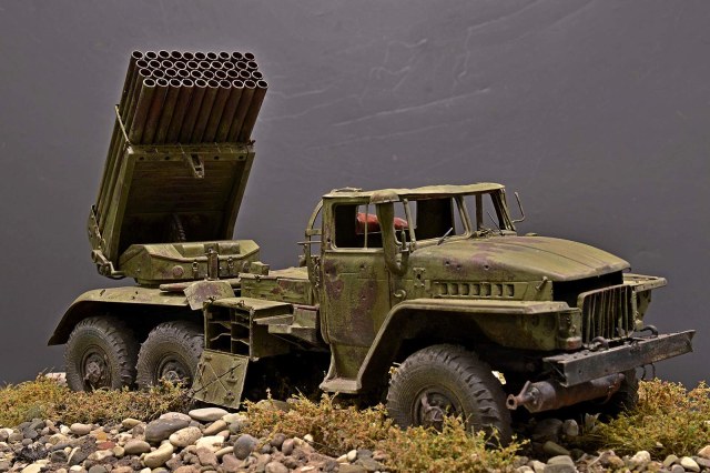 Модель от TRUMPETER. Замечательный набор, при сборке которого получаешь только удовольствие. Отменное качество и количество деталей, превосходная стыкуемость… Данная модель не является прототипом конкретной машины, но работал по фотографиям валка Дмитрия Деревянкина БМ-21 РСЗО 9К51 "Град" на шасси Урал-375Д.