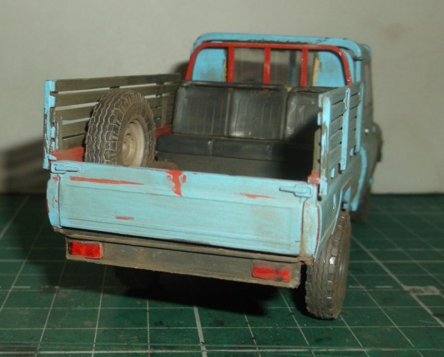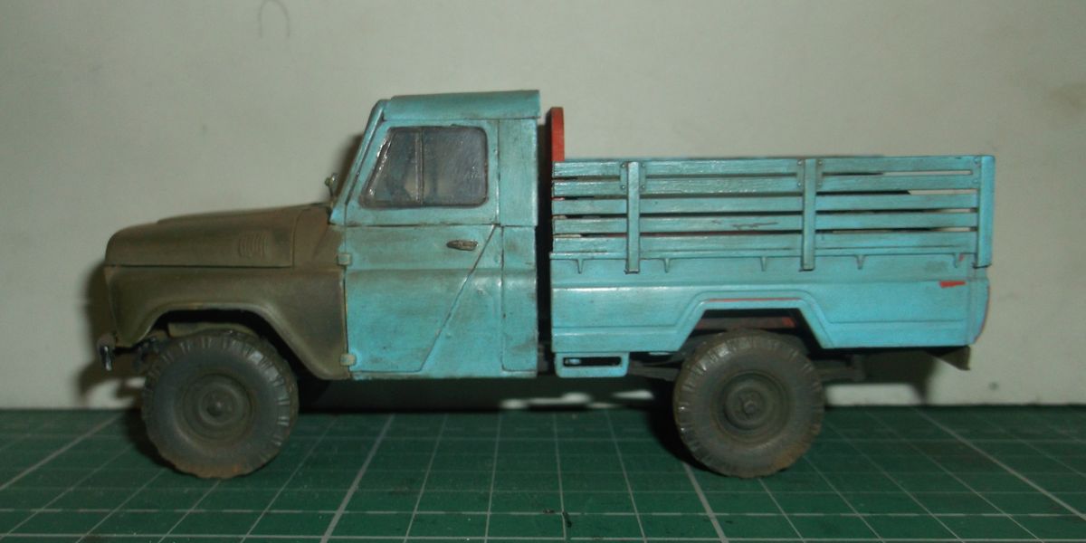 Бросились в глаза мелкие непрокрасы и неровная рамка ветровых стёкол. Пигмент с колёсных дисков я бы стёр,монотонно смотрится и ржавчины надо добавить