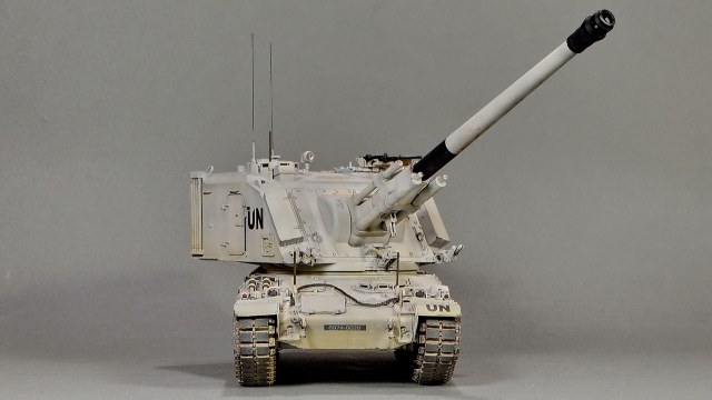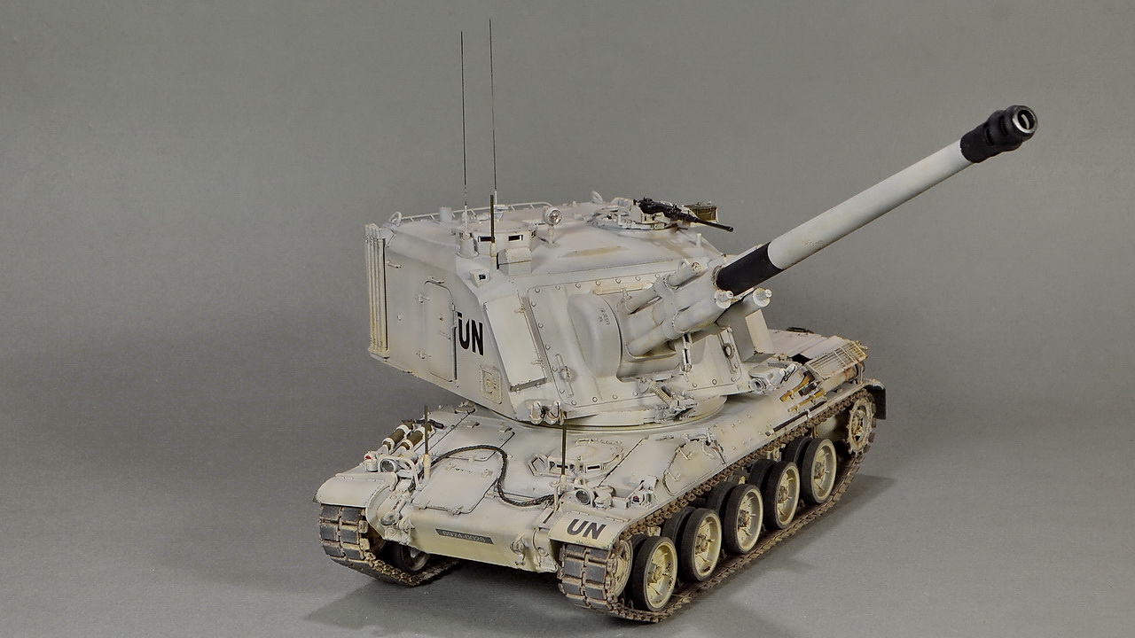 Итак, по существу. Модель от "Meng" весьма порадовала в плане деталировки, стыкуемости, но очень огорчила наличием облоя на абсолютно всех деталях ( а их не мало в наборе), даже на самых мелких, которые и в руку-то взять сложно, не то что обработать. Это ужасно неприятно. Мне, видимо, очень повезло с набором))) На обработку ушло больше времени, чем на саму сборку, гораздо больше. Собрана модель из коробки. Кое-что поменял, кое-что сделал-не существенно и по минимуму. Поэтому практически чистая изкоробка. Сборка не без косяков, но это исключительно из-за моих кривых рук и полуслепых глаз. В мат. часть не вникал. Посмотрел некоторое количество фото реальных САУ в сети, вроде похож. При покраске использовал химию "Tamiya", худ. масло. Как бы и всё. Сфотографировал как смог. На один "недострой" стало меньше))) Чему я несказанно рад. Осталось еще пять, в разной степени готовности. Надеюсь , что и их закончу.