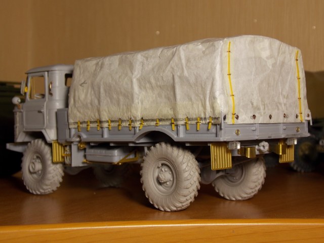 Для облагораживания этих,по сравнению с трубачём,дровишек использовал травление "Микродизайна". фары "Эльф", колёса "Миниарм" и бумажку для тента.