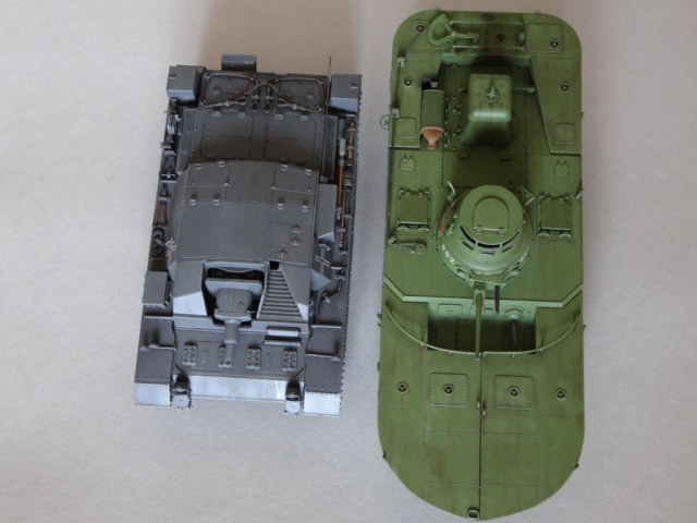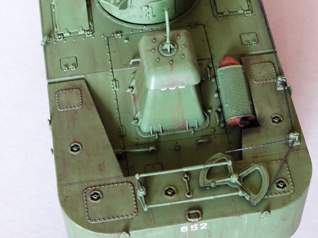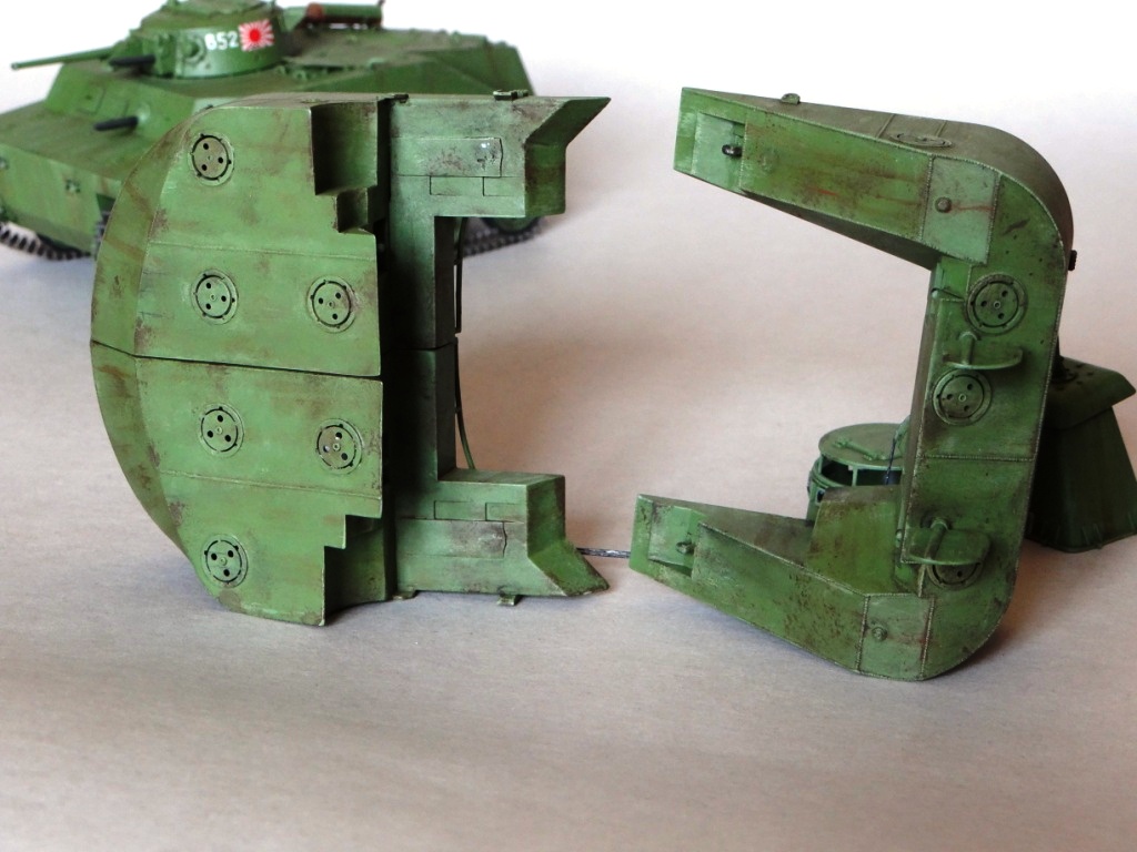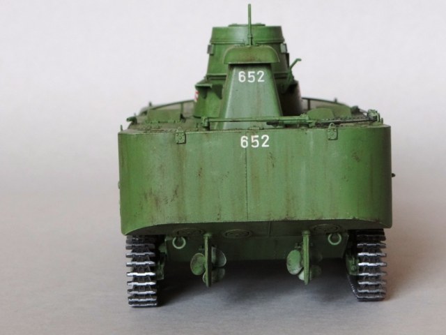 Собрал я его уже достаточно давно, решился выставить лишь сейчас) Модель представляет собой поздний вариант танка, основные отличия от раннего - разделяющийся на 2 половины носовой понтон и, конечно, другой цвет) Набор Дрэгона позволяет собрать как с понтонами, так и без них. Я пошел своим путем и собрал оба варианта. Долго обдумывал и решил использовать магниты для крепления элементов, предназначенных для плавания. Магниты обошлись недешево, их тут около 20 шт., зато модель можно смело брать за понтоны и не бояться, что они отвалятся. Качество изготовления модели шикарное, тончайшие элементы, ажурная ходовая, стеклянные элементы, немного травления, элементы интерьера. Ну и немного дегтя: траки ДС - не очень идут этой модели, на многих фото на этом танке достаточно сильный провис траков, и это при том, что у Дрэгона есть индивидуальные траки на эту модель, которые он упорно не хочет использовать. Есть небольшие неточности и отличия от оригинала, например совершенно не проработано днище носовых понтонов.