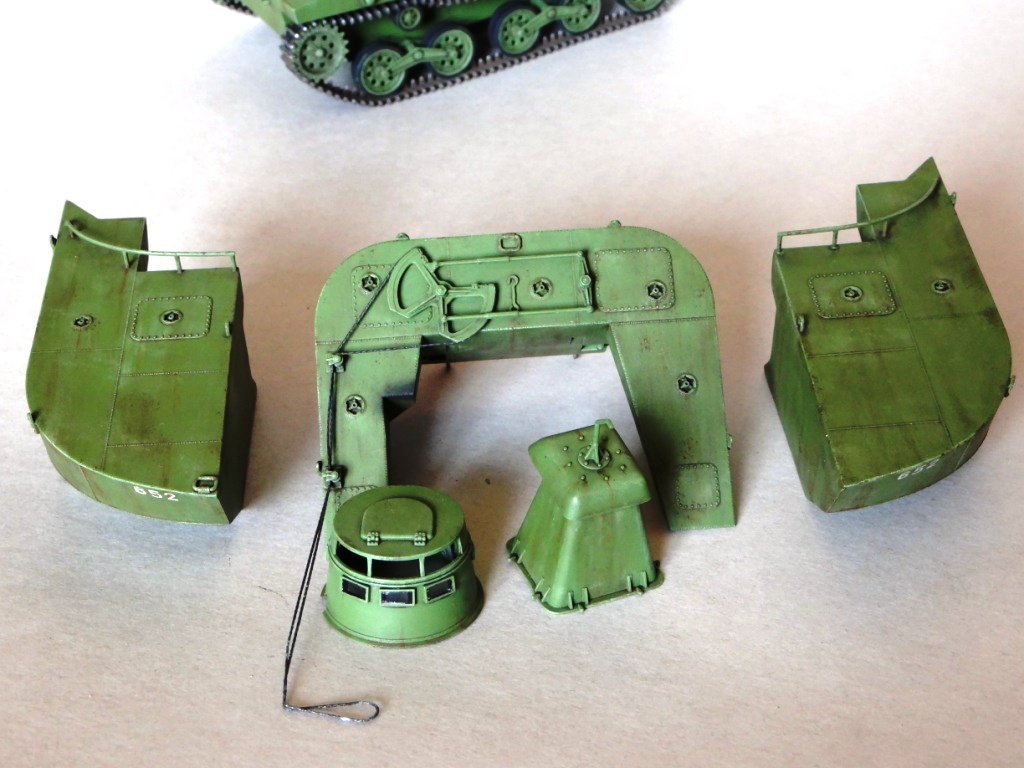 Мною заменены траки на металл от Спэйд Эйс, они отличаются от оригинала, но провисают очень художественно) Изготовлены уплотнительное кольцо башенного погона, арматура на днище носовых понтонов, добавлен штурм-трос, ну и магниты.