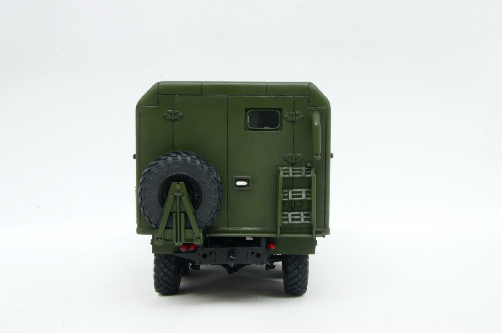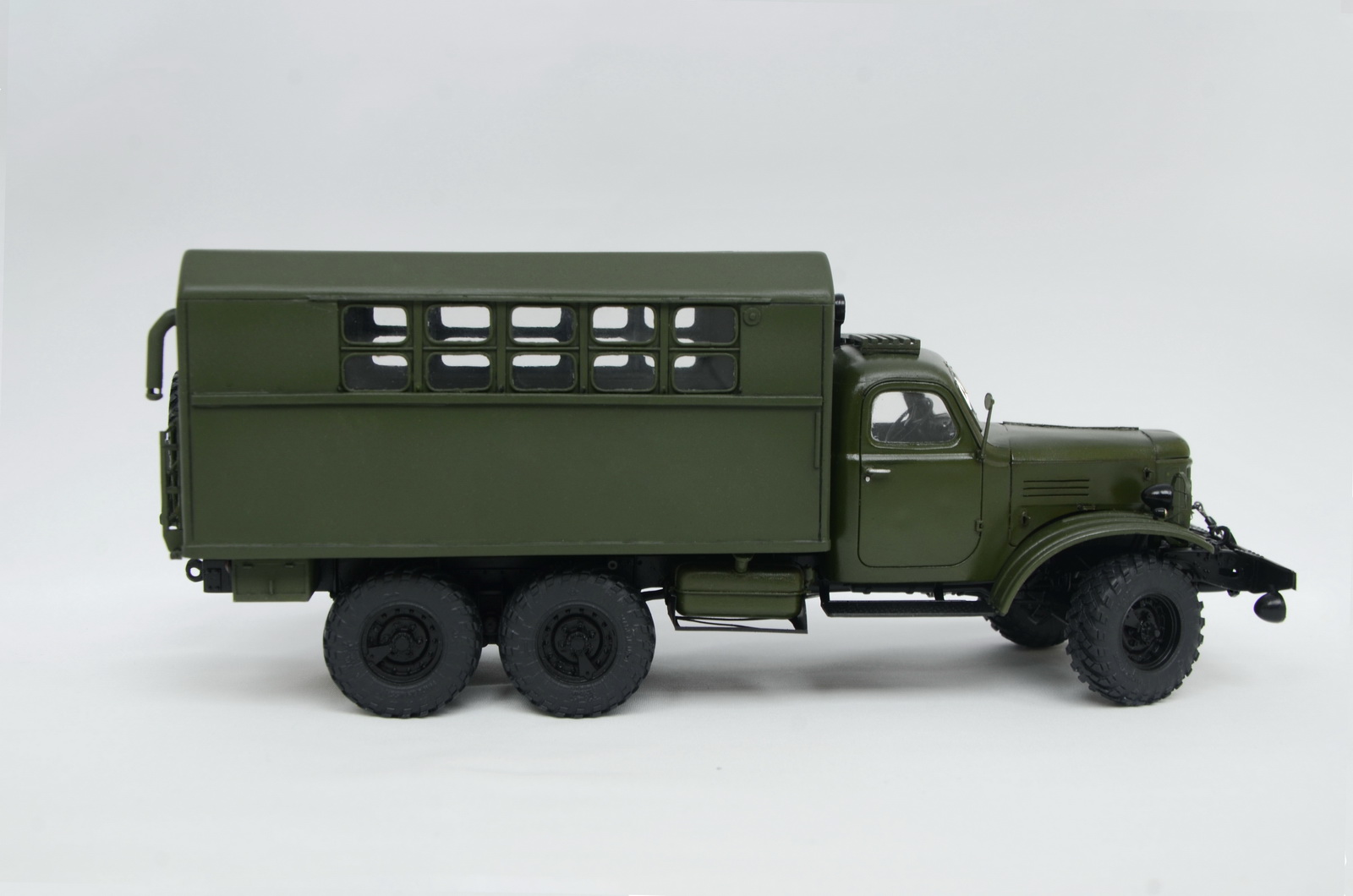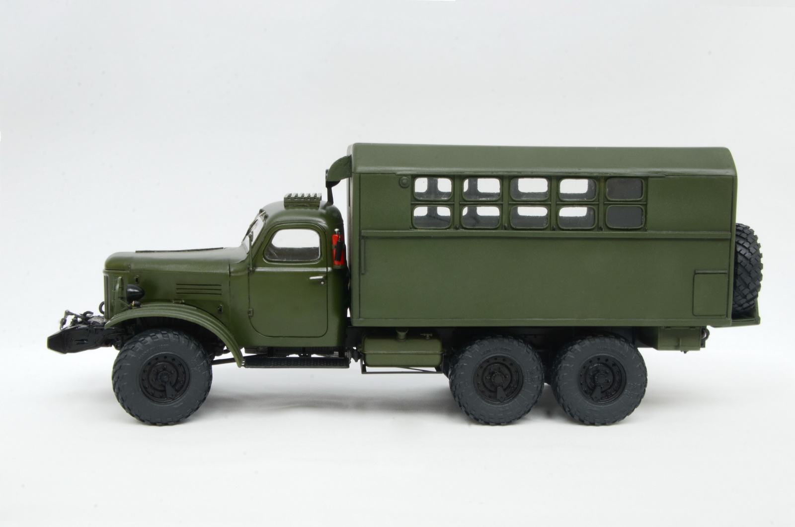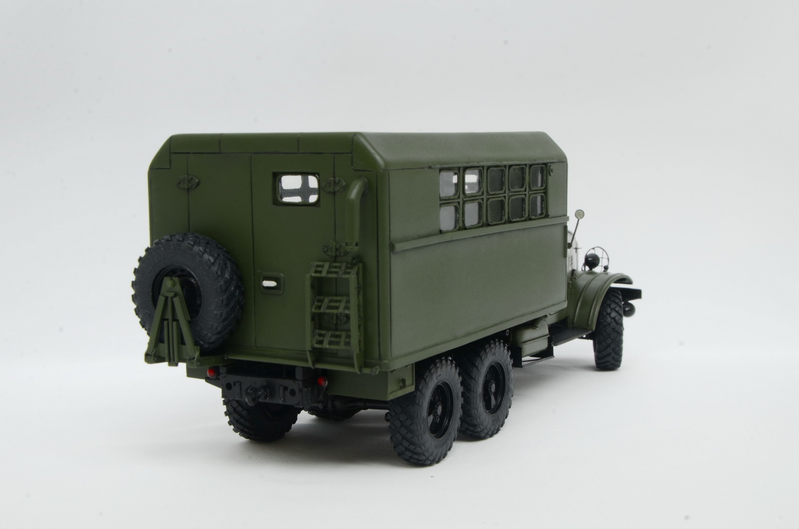 Мне он правда дался с трудом. Этот трехлетний долгострой чуть вообще не отбил охоту к моделизму. Кунг пришлось переделывать целиком (сперва неправильно размеры снял с фотографий), а потом три раза оконные блоки - никак они мне не давались. Но все хорошо, что хорошо заканчивается. Итогом более менее доволен, хотя косяков хватает, особенно с этими окнами - будь они неладны.