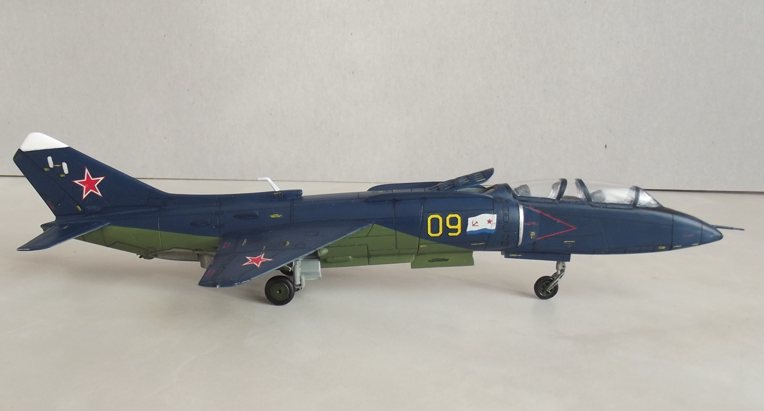 и всегда стремился,что бы был в коллекции Як-38.И так как устал ждать в 1/72 хорошую модель,а сегодня и АМОДЕЛ не производят и не достать даже на фарцовке,то приобрёл в 48-м от хобика. Но только не "У",бррррр.:-)