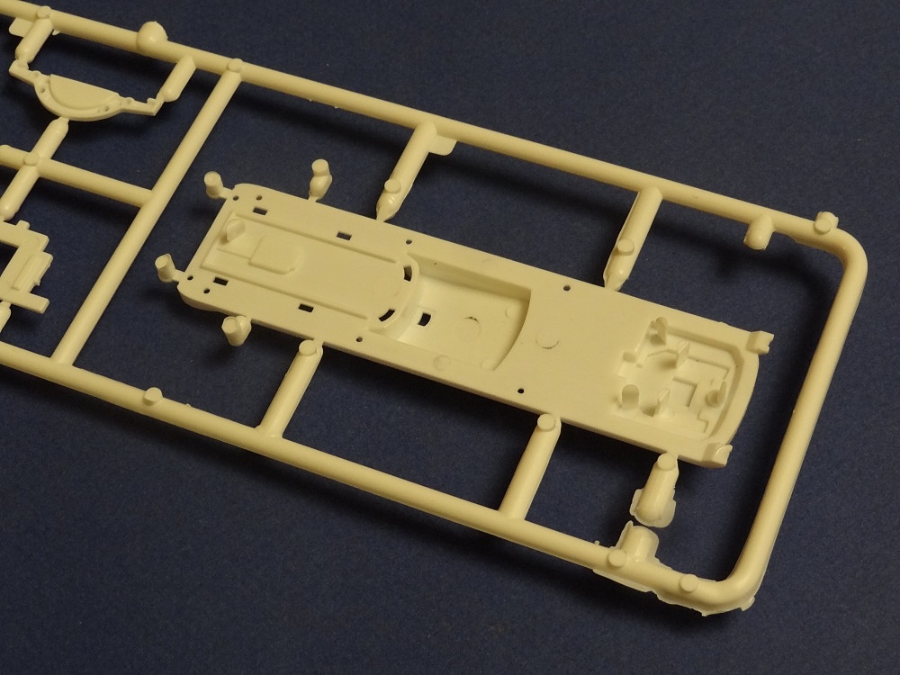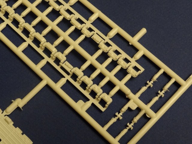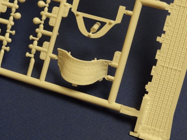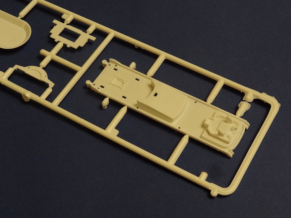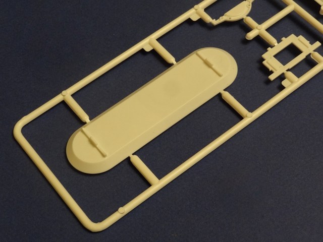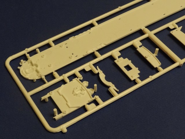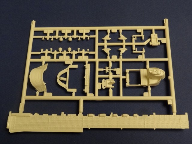 Корпус судна отлит одной большой монолитной деталью. Корпус отлит хорошо: облой не обнаружен, толкатели или следы от пресс-форм отсутствуют. Иллюминаторы сделаны не сквозными, то же самое и с подруливающими винтами(которые вообще не отлиты) в носовой части судна. Все спасательные средства отлиты всего на двух деталях. На палубе сделана имитация древесины, но смотрится немного "замылено". У гребных винтов большая толщина, нужно стачивать до оптимальной толщины. В набор входит подставка под модель.