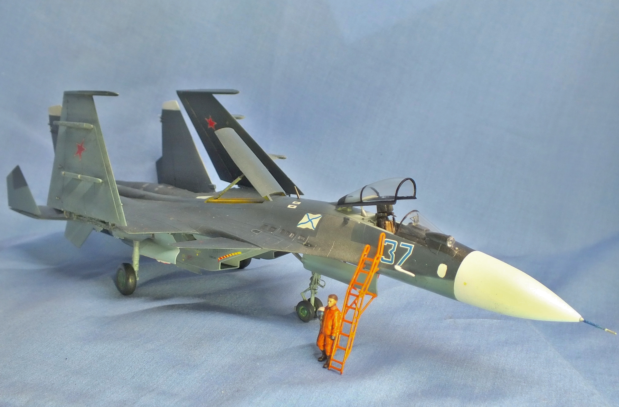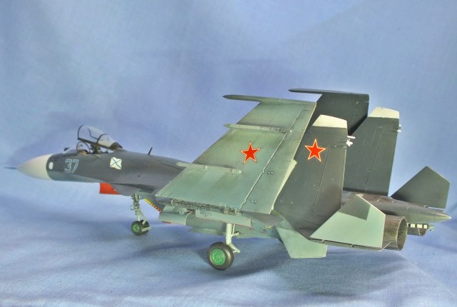 Фотографий маловато. А те, что есть, какие-то шумные что-ли. Не удаётся детально рассмотреть модель. Если отбросить то, что Су-33 в таком окрасе не было, о чём вы и предупредили, что окрас вымышленный и оценивать сугубо качество сборки и окраски, то модель, как мне кажется в жизни лучше, чем на фото. Но передняя стойка шасси куда-то уехала. Кили, как мне показалось тоже разъехались, они не параллельны друг другу. Фотографии подлым образом выдают "зернистость" поверхности. Краска так легла? А в остальном вроде ничего Сушка! Я б не сказал, что дикий песок прям. Какое-то двоякое впечатление и всё-таки виной плохой части этого впечатления, как мне кажется, фотографии.